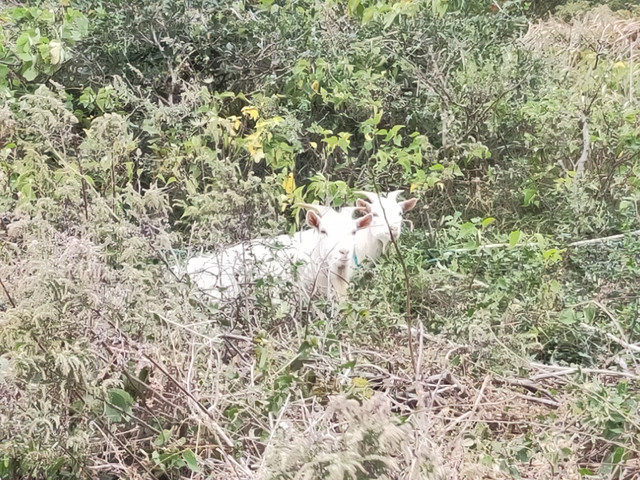 遇到两只咩咩,一只在吃草,一只静静地思考人生。