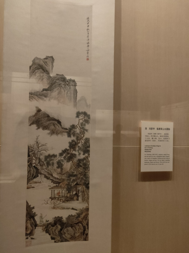 来到书画展厅,这里的灯光设计,可以做到能感应游人的靠近才把灯光調亮。估计对于年代久远的作品保护很有必要。有次在北京美术馆看的也就一百年的中国画都裂开了