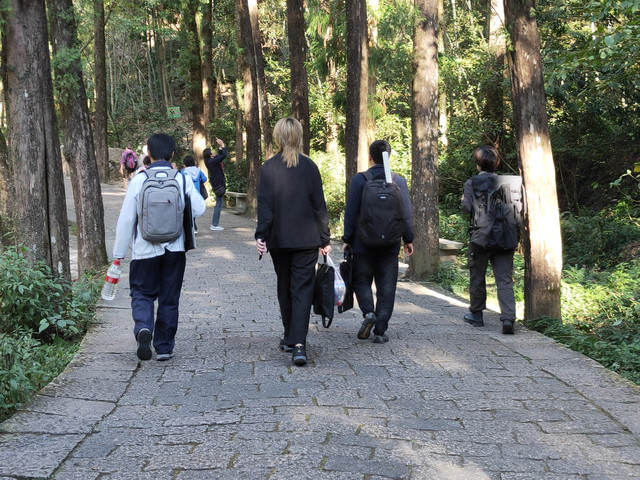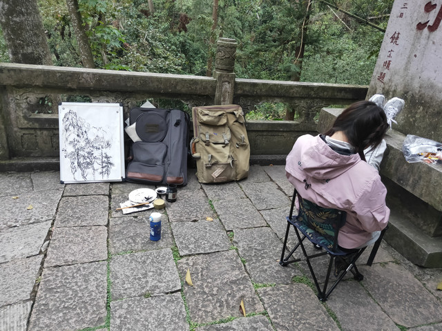 是昨天运动量太大了吧,今天醒得比前两天晚了些,出发去大景点~灵岩。遇一队写生的队伍,搞得我好想去写生呀!
