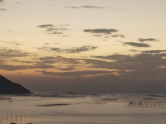 第四站:陈伍侯王殿。驻地附近有个小庙,南方庙宇真多,快赶上东南亚了。回民宿洗澡,退房背上行李吃完午饭,奔赴下一景点:霞浦。第一站:北岐滩涂。入住网上订的青旅,只剩一间房了,环境不错,还有穿衣镜,只是每张床没有帘子。看日落听信了青旅前台的话,去得有点晚了。
