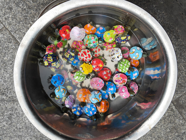 出来搭车到了第二站:丽水古街。门票15元,如果从中间进来应该不用买票。图中把小乌龟画成这样,也太搞笑了。这条古街,也仿效丽江,都是新型民宿、咖啡馆什么的,无奈游人太少,也不知道在这里开店赚不赚钱?
