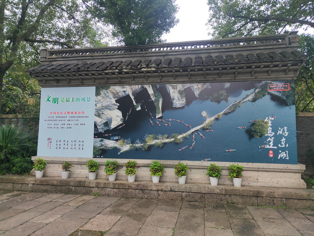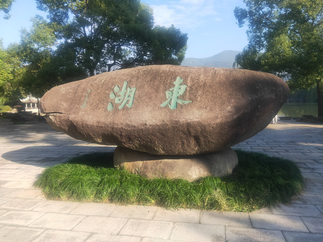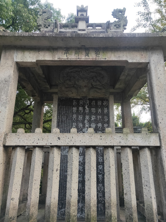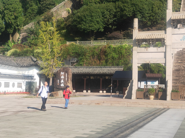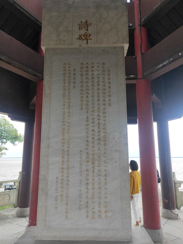 国庆圈友发的图片人挺多的,看这观潮楼的收费,可我到一个碑刻(仿制)想细看时,却发现全是昨天下雨的泥点,里面还停着工作人员的电动车。我也只能呵呵了……
