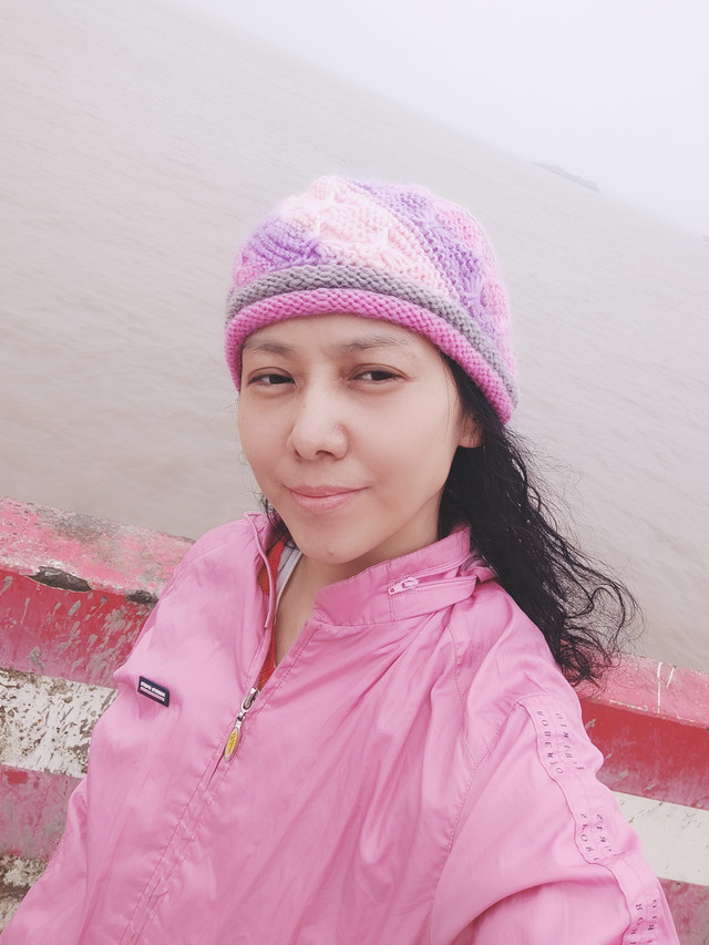 4点半起床,走至观景处,已很多人了。邻居阿姨给我的小帽,这会派上了用场。功夫不负有心人,终于等到了咸蛋黄!