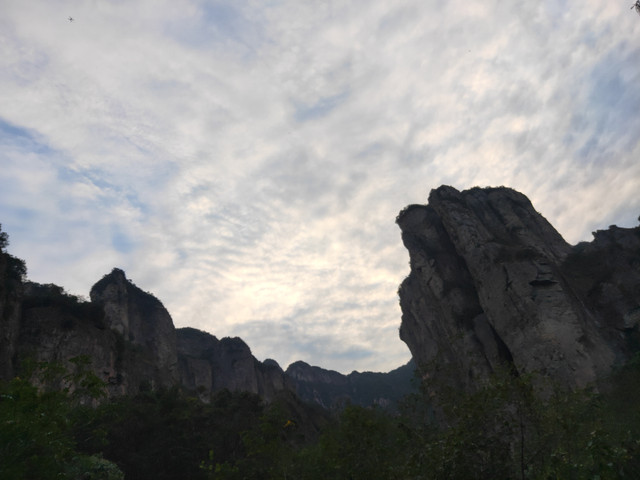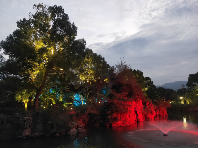 买的套票含“灵峰夜景”,干脆把日夜连着看了。我去旅行团聚集的地方,不知道他们要干什么,观察了一会,原来是众导游给自己团队讲夜景的山看起来像什么。