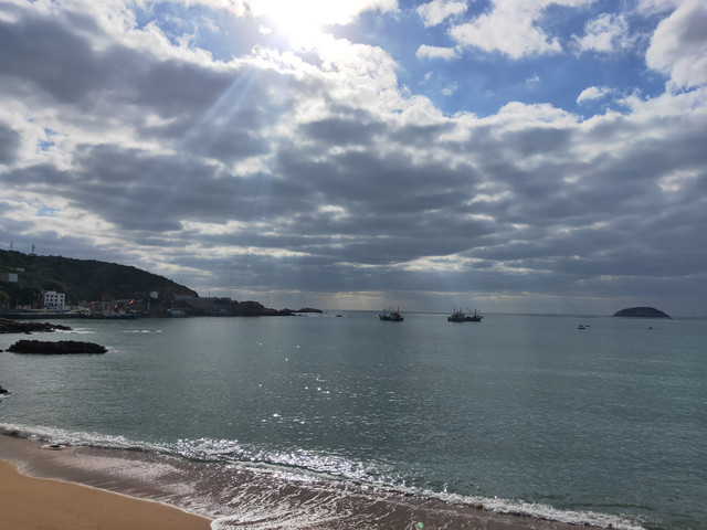 昨天羽绒服都穿了,今天穿个卫衣就可以。坐公交去大桥前的几个小沙滩转转,等到了最出名的大王,(面积有几百平米吗?)居然门票要25元!抢钱呀比无人村还过分!干脆提前出发去码头,居然换成了早两小时船票。我是幸运宝宝