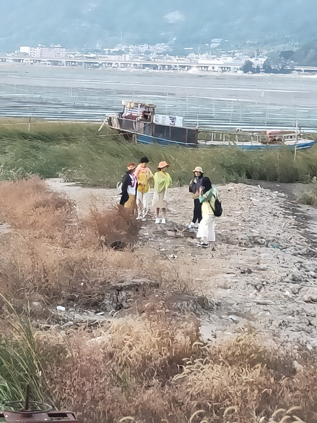 游人还蛮多的,幸好赶到了,因为潮水只一趟,回潮大概在一小时后,不知道今天有没有。