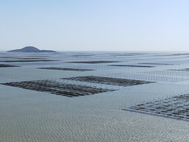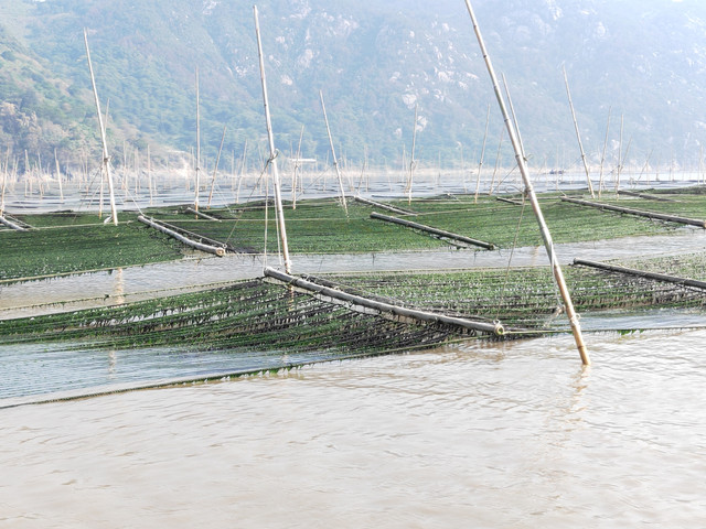 这一片片插着竹竿的是在种紫菜,这里的紫菜质量特别好
