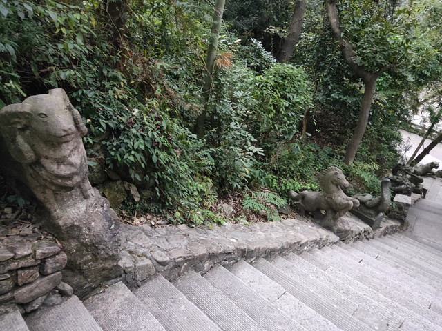 没有趴活的出租车,开刷步数!拾级而下,刚好是个寺院,在做法会,众多僧人和信众。