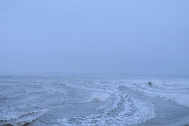 我们约摸午间时分进入到观潮公园,因潮水还未有来临,几人就先在公园内部闲逛拍摄浏览,海宁盐官天天可以观潮、月月有大潮,我们刚好凑巧赶上大潮日前来,这里每月农历初一至初六,十五至二十日均为大潮日,一年内有150多个观潮日可欣赏。