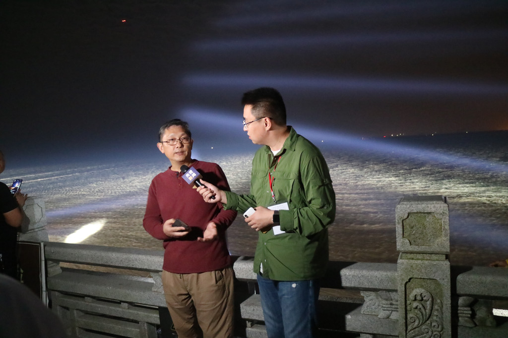 偶遇央视记者在现场采访。这几年,每年八月十八,央视都会做现场直播。