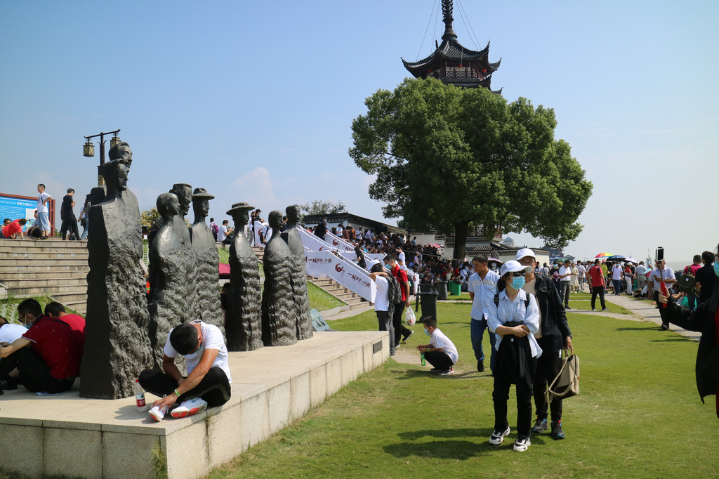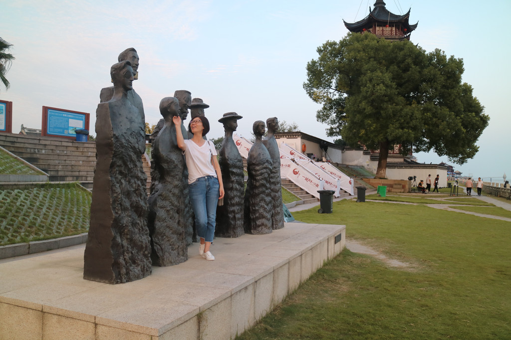 徐志摩携友人观潮雕像矗立江边,更彰显着这座古城的人文底蕴的。