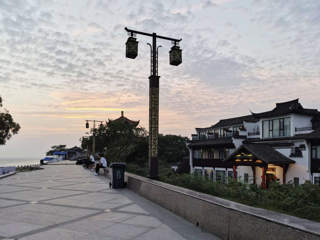 填饱肚子后慢慢散步回客栈,今晚重头戏是观夜潮。