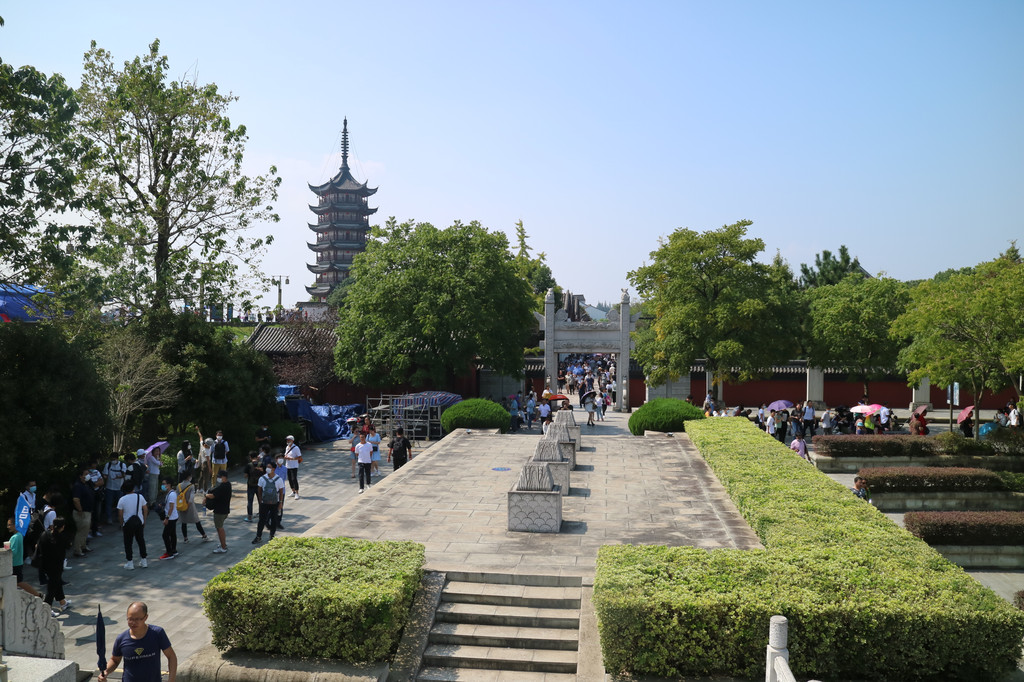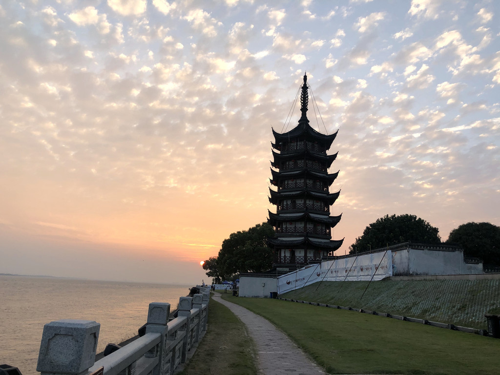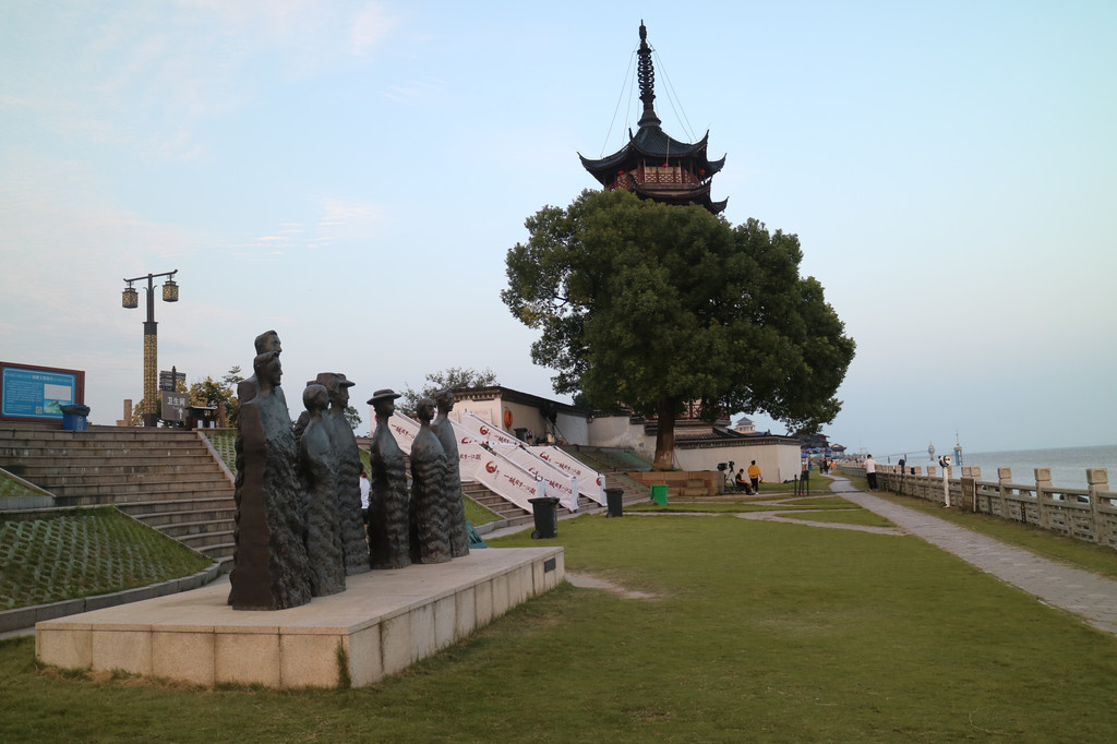 始建于宋代的占鳌塔,是典型的中国式宝塔,距今有三百多年历史,屹立在江边,守护着这片海的宁静。登塔观一线潮,俯视盐官古城是一绝佳的视觉享受,可惜适逢观潮节,占鳌塔是不对外开放的,只供央视拍摄。