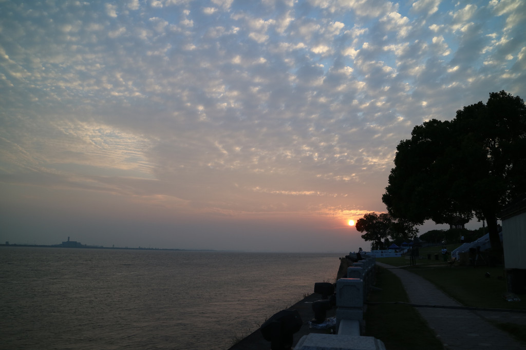 这次订的客栈是观潮公园里面的开元颐居-观潮阁,平日几百大洋的客栈,观潮节两千多大洋起步,真是“饮食百物皆倍穹常时”呀!不过位置是无可挑剔的,位于观潮公园内,面江而立,出门即是一线潮最佳观景区,登上三楼即可观潮,看朝阳赏落日,潮汐相伴,枕月而眠,听潮入梦,倒也物有所值。