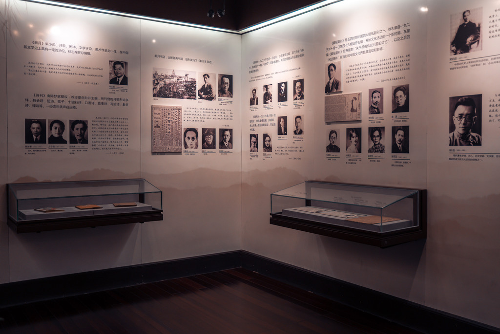 故居主楼底层两侧有徐志摩家世、生平及思想和文学活动陈列,展示诗人短暂而绚丽多彩的一生。正是这幢故居的每一根椽木、每一块砖瓦孕育了主人倜傥飘逸、色彩斑斓的文才———徐志摩笔下的《一道金色的光痕》、《家德》、《祖母之死》等传世名篇,都是围绕着这座老宅的背景而写成的。
