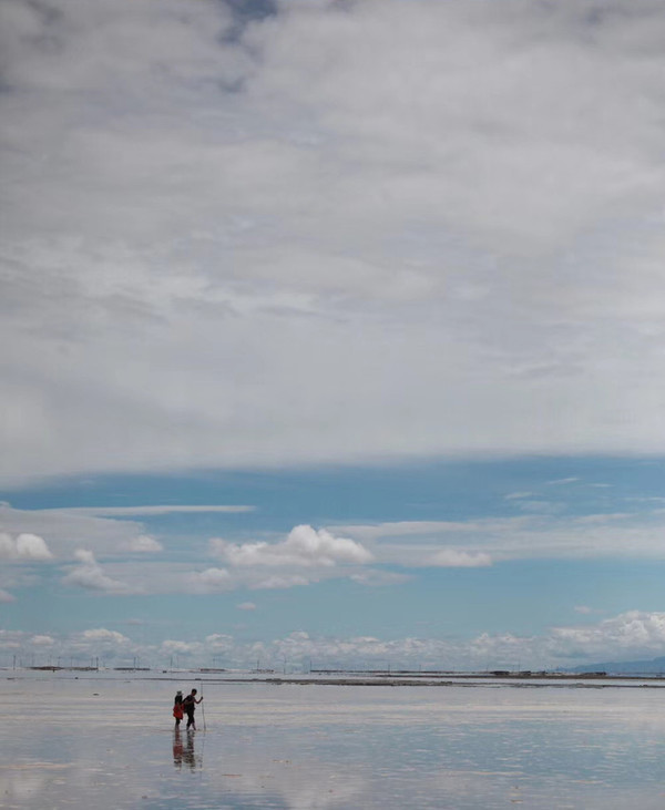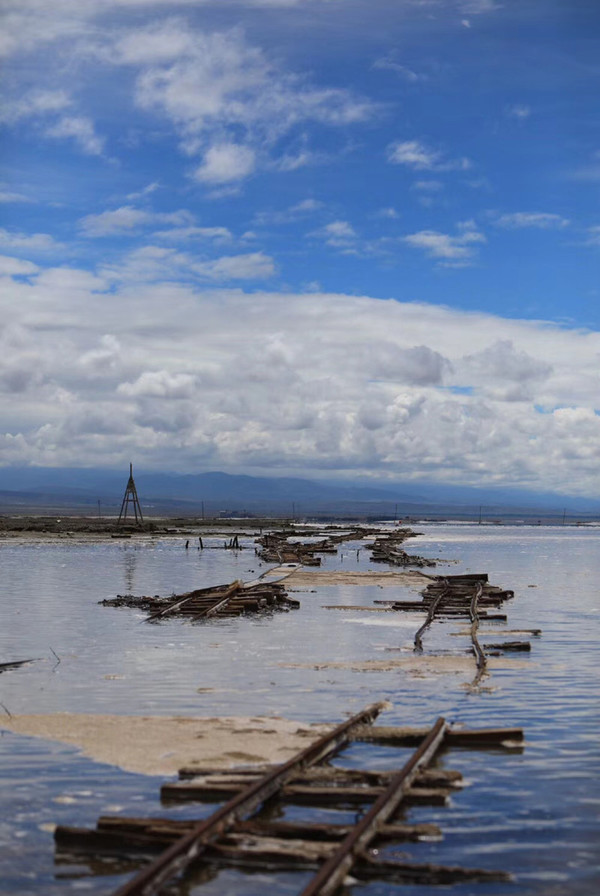 由于时间关系,本来和马师傅约定2个小时,硬是玩到了快4个小时,其实大部分时间都是浪费在进入湖心的部分,因为旺季人多,离岸近的都人满为患,为了拍一些比较人少的地方,我们就淌着水往湖里面走,在这里也提醒进入想进入湖心的小伙伴,在走的时候千万不要走到黑色的地方,那里都是盐坑,踩到了会陷下去。而且这次因为是雨后去的,所以水位上涨,也拖慢了我们前进的脚步,导致大部分时间都浪费在了路上。其实景区里面有好几块盐湖,这次玩下来不是太建议最里面的盐湖,就是小火车的底站这里,因为湖上漂浮了很多的气沫,不是很好的能反射天空,但是有一片废弃的铁轨,也是很不错的。有块盐湖叫天空之境,小火车好像是第二站,虽然人比较多,但是湖面确实干净不少,也是值得去拍。