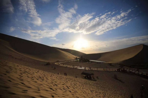 从莫高窟回来到酒店歇了一会,那会儿是差不多4点左右,因为 西北 夏天白 天长 ,基本要到晚上9点左右天才会黑,所以4点的时候太阳还是很晒,就选择歇一会,到6点半的时候再去鸣沙山,要注意的是,虽然6点半太阳还是很晒,但是好像快7点的时候就停止售票了,至于进园的时候有没有时间限制倒是不清楚,所以大家可以在6点-6点半之间购票进园是最好的。