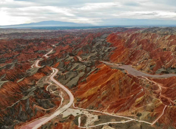 这个景点不像雅丹地貌那样,丹霞地貌是被圈起来的,但我们住的地方旁边是边缘,其实也是能站上去看一看的,但都不高,都是小坡,看不了全貌,所以我们开好房,吃点东西,就直接进去了,这里也是有时间限制的,所以不要太晚,但是如果当天没参观完的话,可以在出口处录取指纹,第二天早上(具体几点忘记了)可以再次入园,不过要交车费。其他就没什么太需要注意的地方,因为有直升飞机,所以依然不能放无人机。进去后是需要坐摆渡车,好像是有3条还是4条线,但停靠站都是一样的,只是出入口不一样,记得是有4个站,我是从北门进的,所以按照工作人员说的,第三个站所看到的是景色最大,第四个站所看到的是景色最美,不过我不确定,小伙伴们进去的话可以问问工作人员。