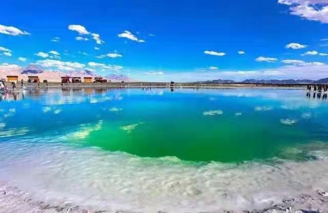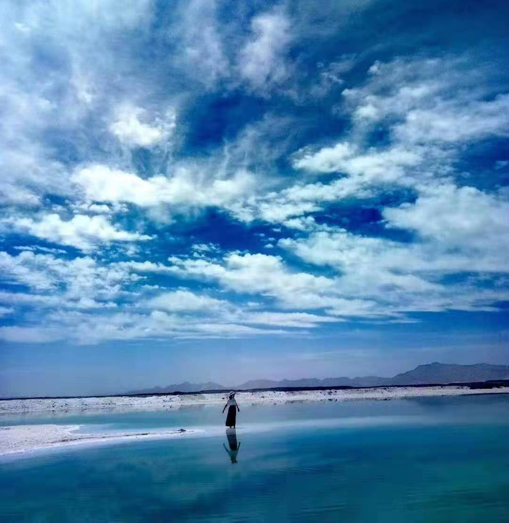 1. 当然是专门为他而去的“翡翠湖”,实至名归“湖水清澈湛蓝,色如翡翠”,仿佛误落人间的美玉,蓝的让人心动,据导游小哥说,翡翠湖要在天气好的时候看起来才最美,但青海夏天大部分时间都是大晴天,如果撞上阴雨天,那就是真的很不幸了,翡翠湖在格尔木到敦煌的路途中,不必特意绕远路,有很多大大小小的湖泊,拍翡翠湖当然是航拍最美,很多人都带了航拍飞机,我们这种穷游的学生就只有羡慕和白嫖人家美照的份了。到了这里,除了激动还是激动,千玺走过的地方啊,感觉有一段话很应景“我吹过你吹过的风,这样算不算相拥,我走过你走过的路,这样算不算相逢”啊啊啊啊!激动激动!!!