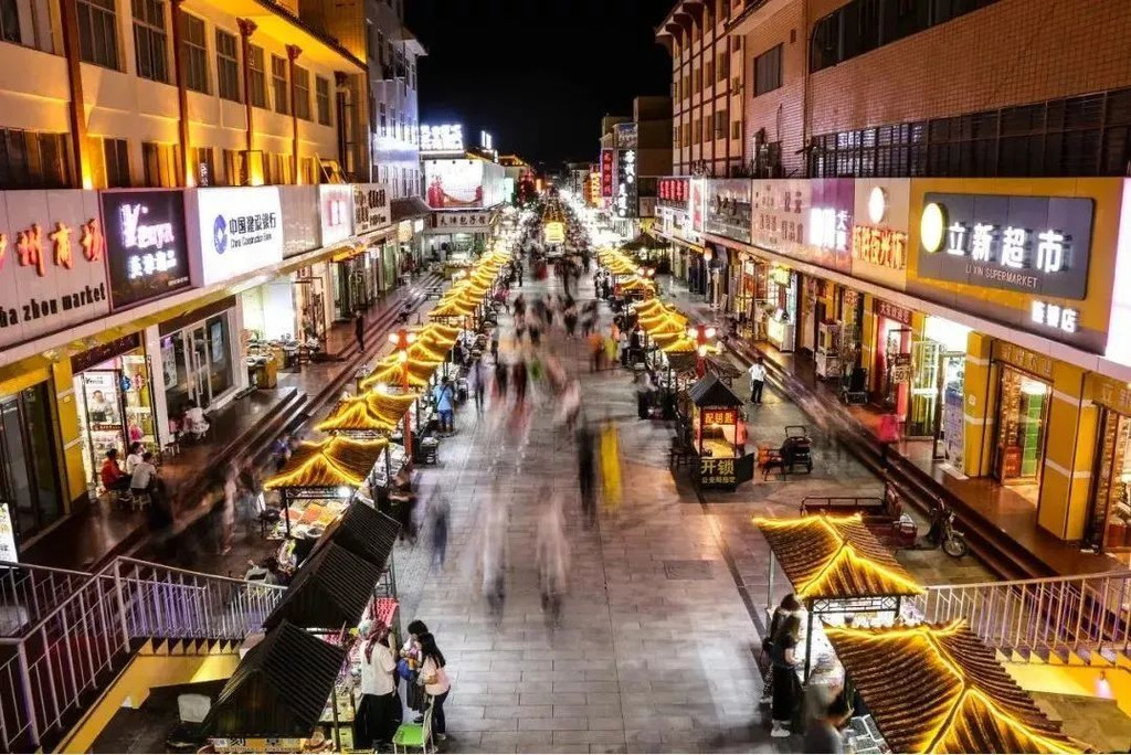 著名的敦煌夜市,各种小吃铺、商店营业到凌晨,一家挨着一家。