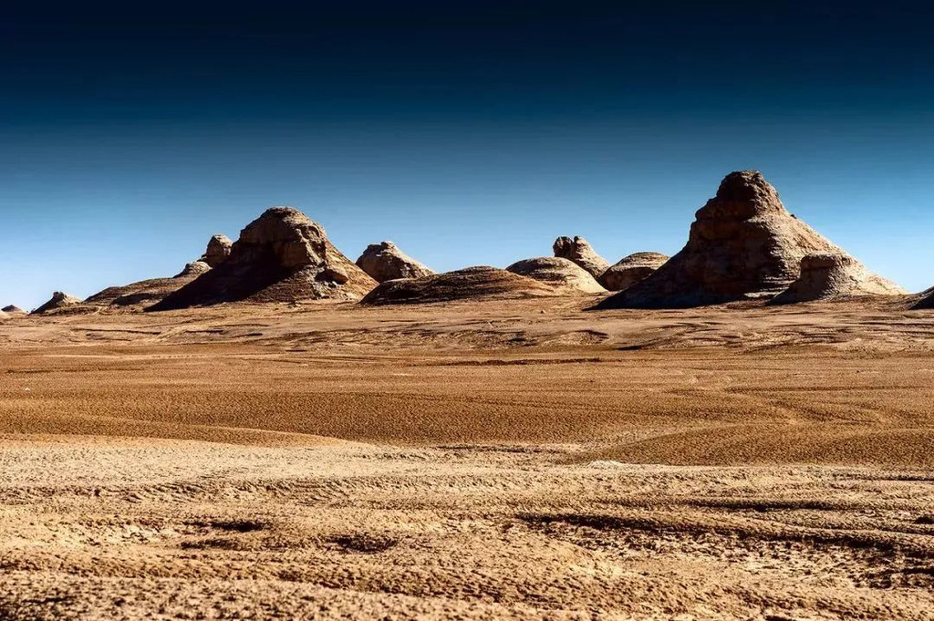 土山峰被侵蚀成不同的形状,表面残留着粗大的青灰色砂砾,一块一块斑驳诡谲。