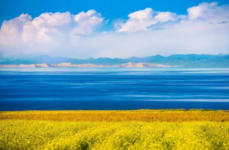 高原之上的「 青色之海」,呈现不同程度的蓝青色,宛如被蓝天所染,满目清凉。