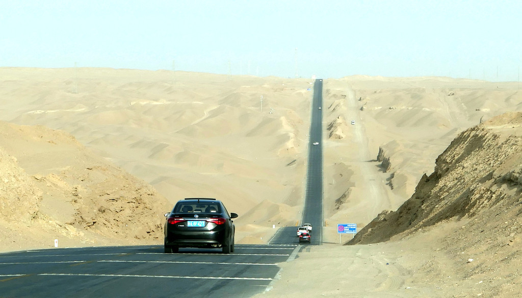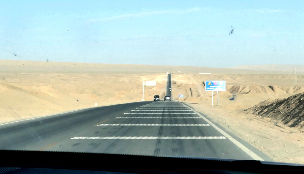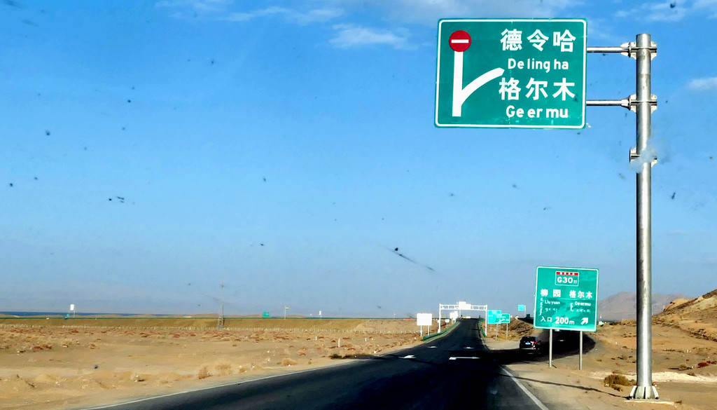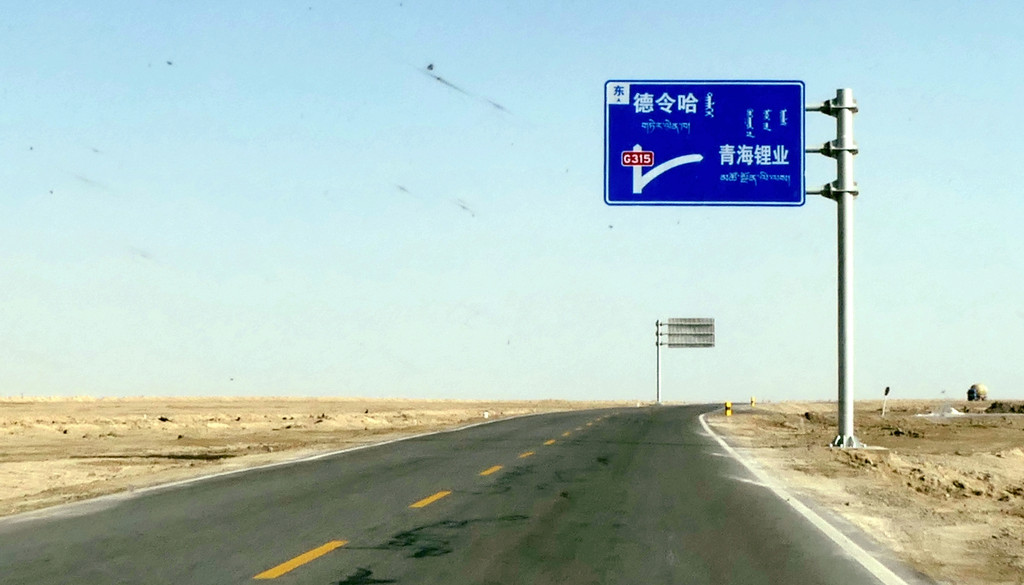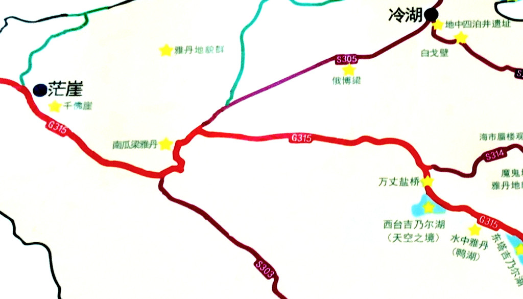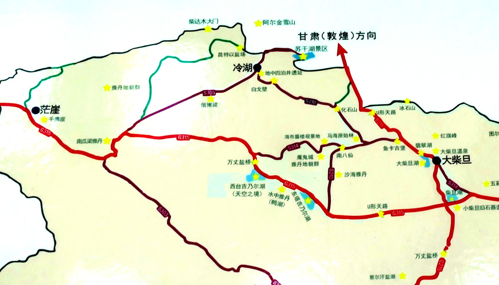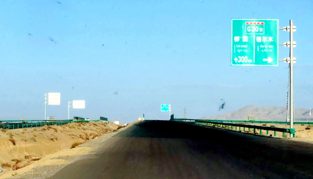 出城后上国道G315(西莎线),按照两天前从敦煌过来时所走的道路逆行,10:42驶经三岔路口,从这里右拐是省道S303,通向格尔木(360公里),我们沿国道G315继续直行,驶向黄瓜梁。