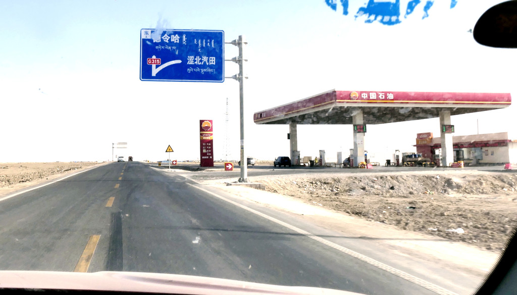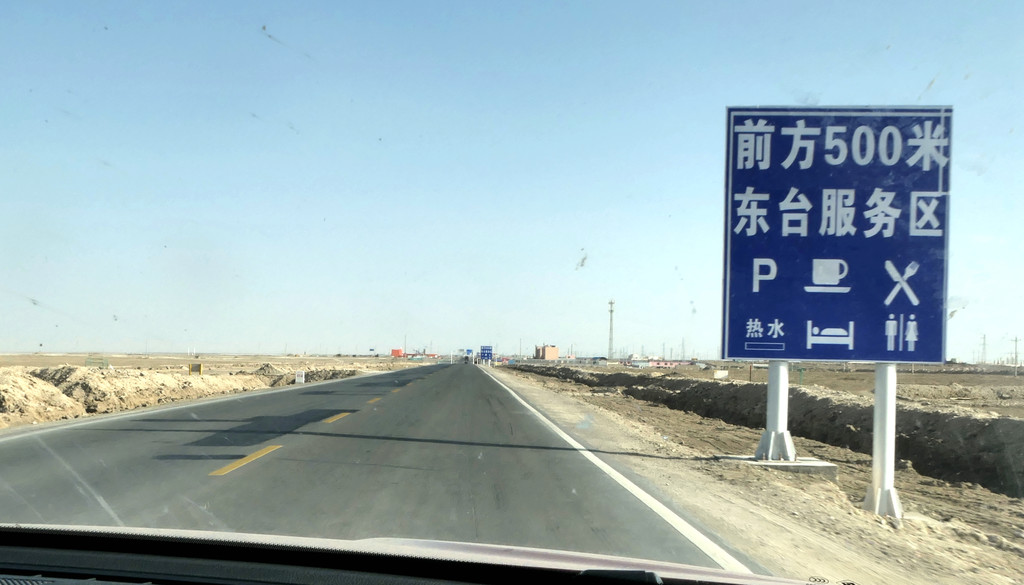 “东台服务区”可谓是这一带的交通枢纽,国道G315与G215(连接冷湖、敦煌)在此处交汇,附近还有一条岔路“涩格线”,连接格尔木。服务区内有宾馆、客栈、餐馆、加油站,甚至还有一家小超市。现在想起,若当时能在此处打探,应该是能获知有关“青海版小马尔代夫”的信息,然而,我们却是过于自信,执意认为路边必定会有景区标志,沿路仔细观察,结果一无所获,最终是跟“马尔代夫”失之交臂。事后才知道,其实也可利用电子地图导航东台吉乃尔湖,国道G315在875号路碑附近就有出口通往“马尔代夫”,该景区属“野景”,全年免费开放,或许正是因为这个缘故,路边未设景区标志。