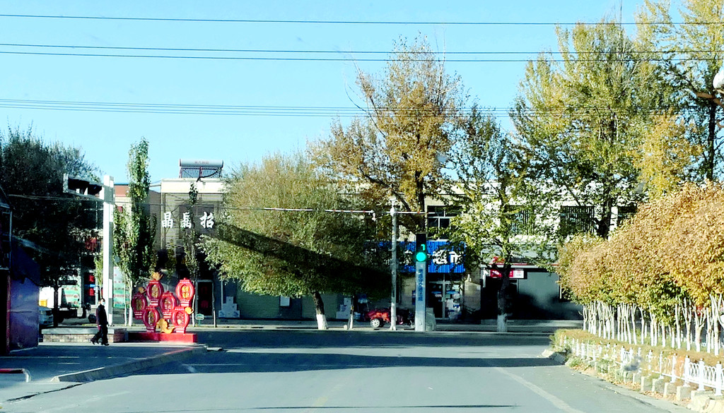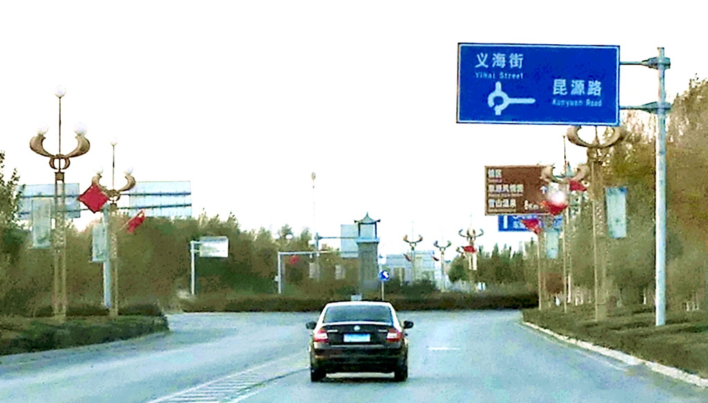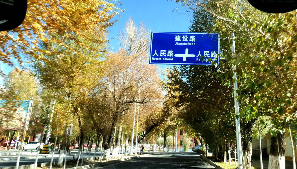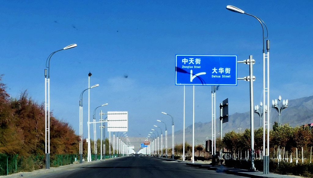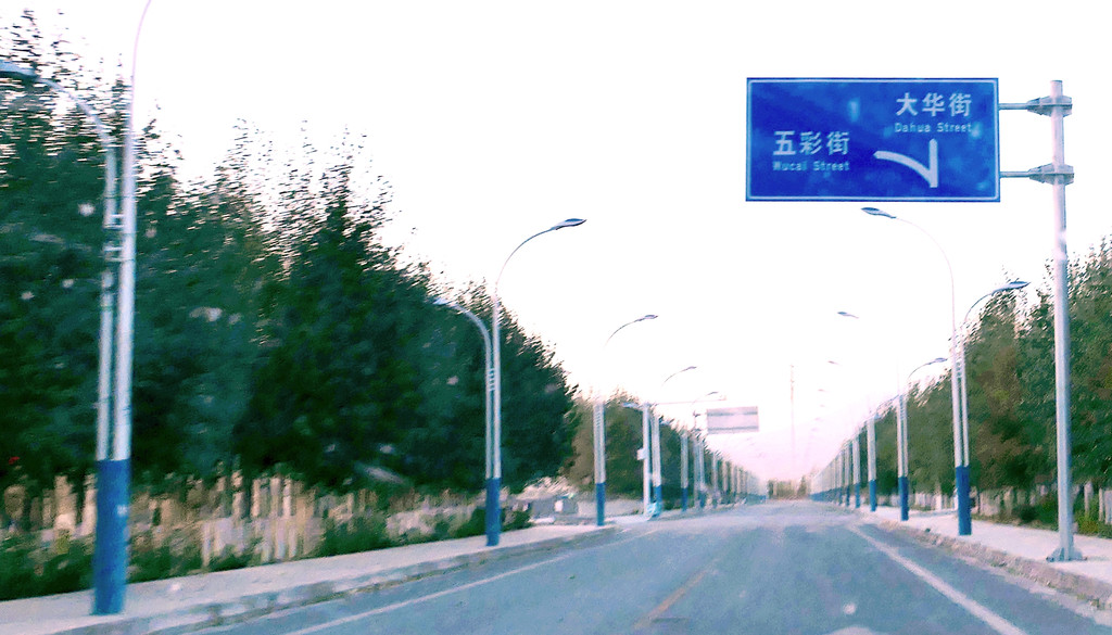 18:56驶抵大柴旦(柴旦镇),高速路出口依然是不见收费站,无需缴费就直接下了高速,这让我感觉非常诧异,X.J.估计可能是因为这里属藏区,也跟西藏一样,高速公路都不收费。18:57经人民东路的路口转盘进入市区,走“饮马峡路”,先后经过义海街路口、创新街路口,19:02入住五彩街上的“晒北酒店”。“大柴旦”是大柴旦行政管理区的简称,它是属于海西蒙古族藏族自治州管理的县级行政单位,下辖“柴旦”、“锡铁山”两镇,政府机构(行政委员会)驻“柴旦镇”。