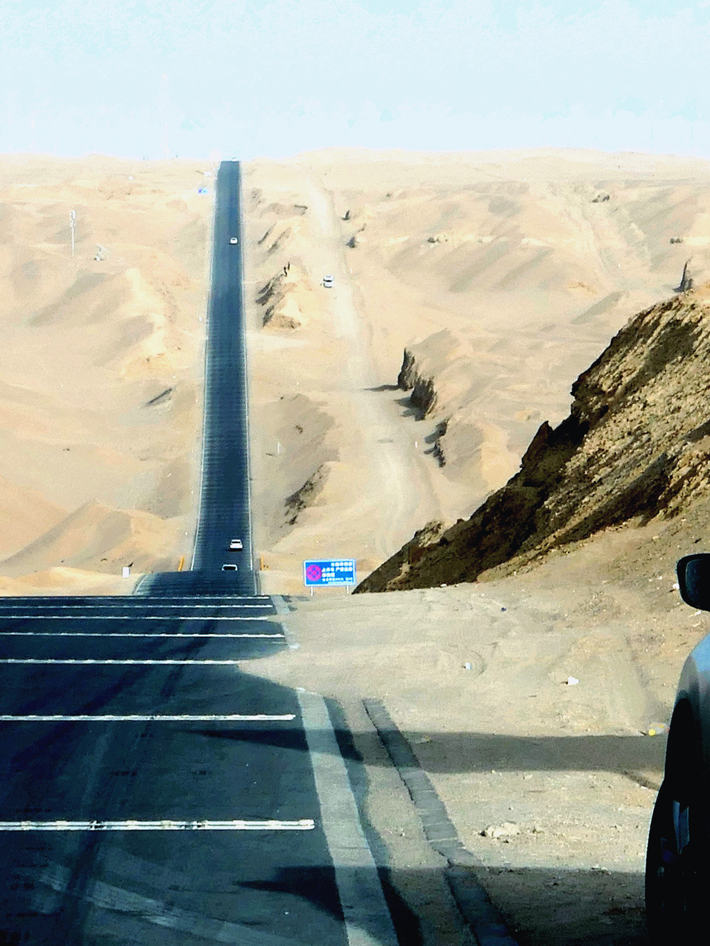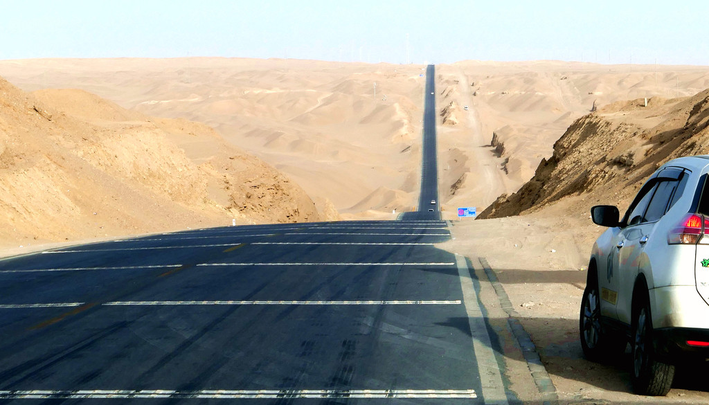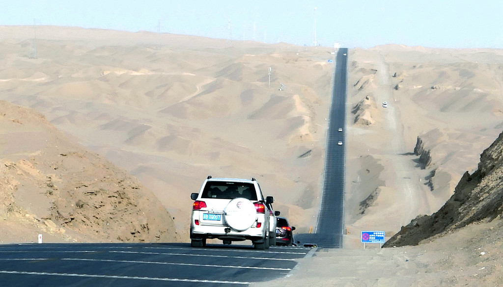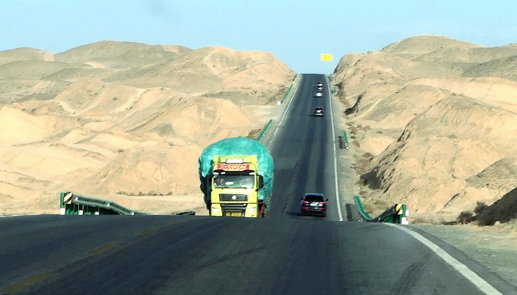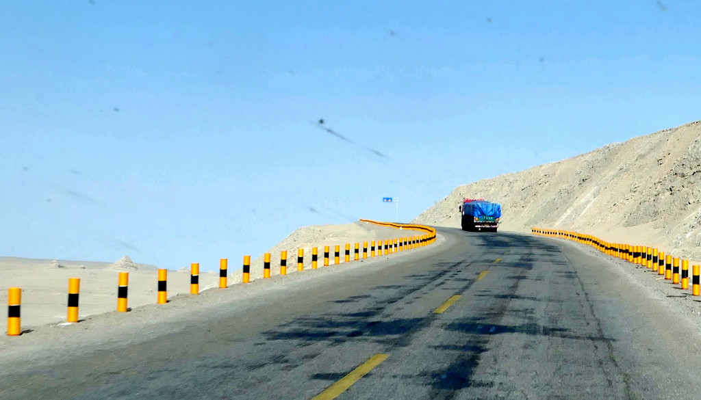 交警要求“减速慢行”,这也正方便我坐在副驾的位置上连续拍照,随着汽车下坡、再上坡,“U型天路”的全程景观变化也就被我完整地拍下。“登天”的感觉主要是来自长距离远眺,若是短距离观察,路面的坡度也就并没有那么夸张。