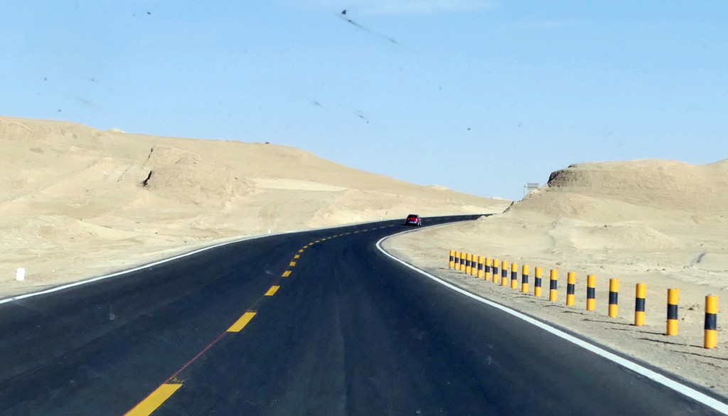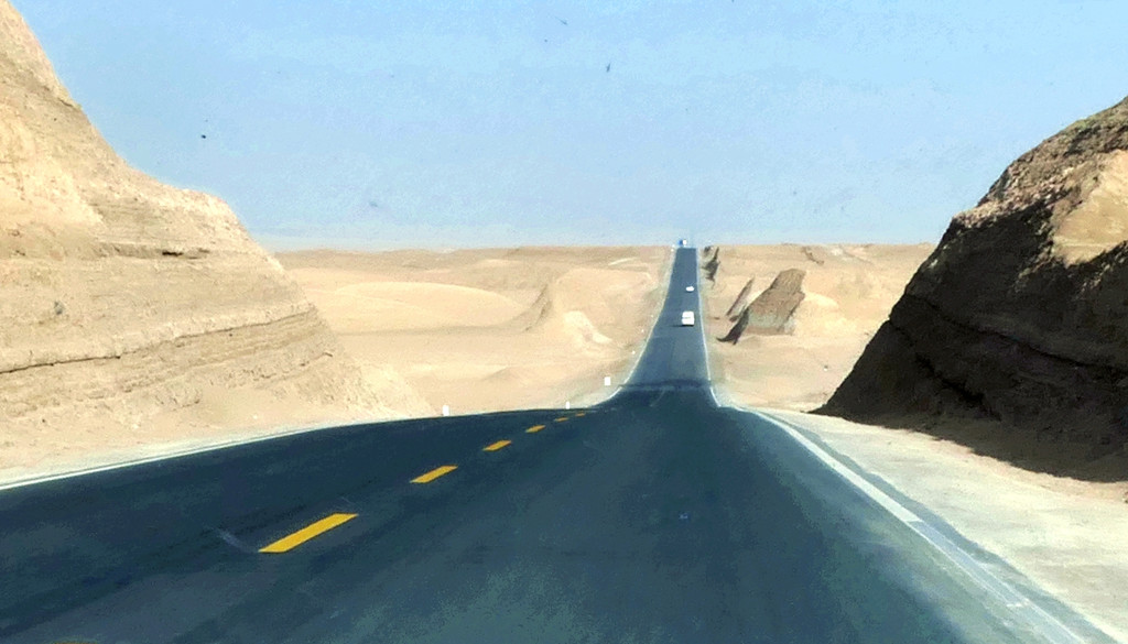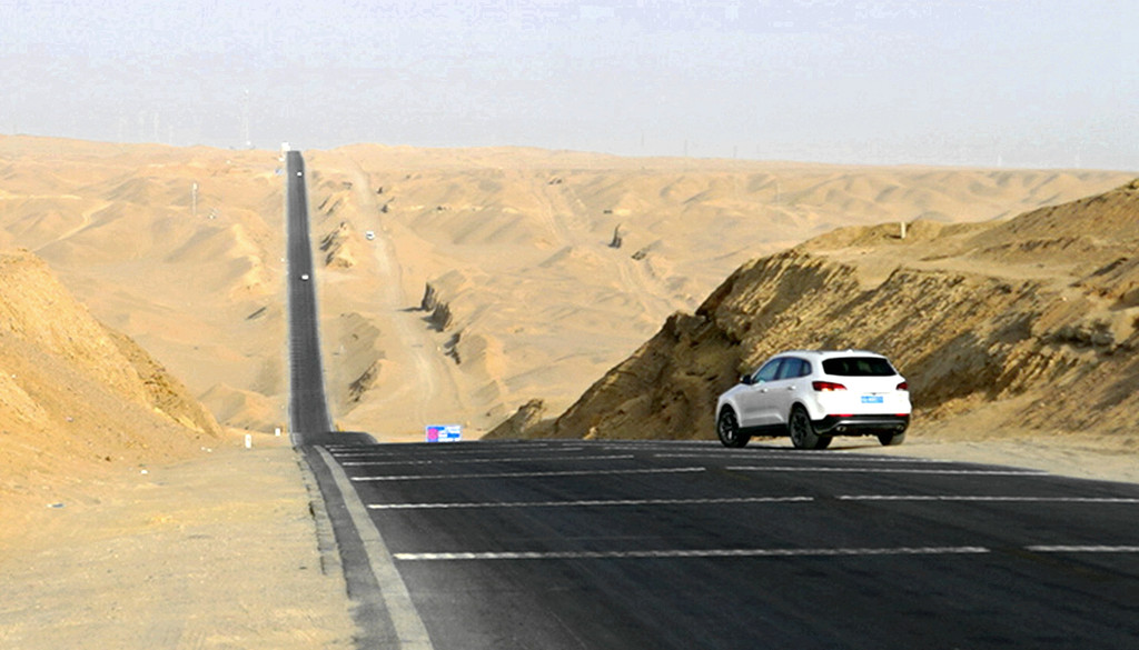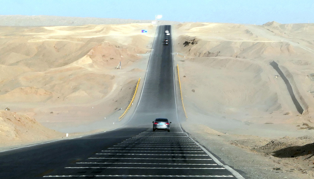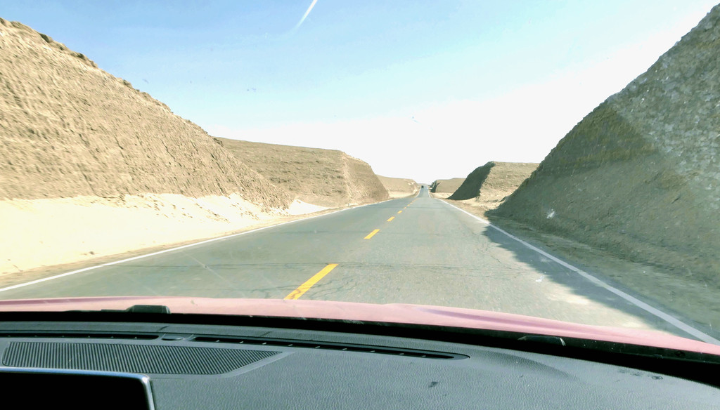 交警要求“减速慢行”,这也正方便我坐在副驾的位置上连续拍照,随着汽车下坡、再上坡,“U型天路”的全程景观变化也就被我完整地拍下。“登天”的感觉主要是来自长距离远眺,若是短距离观察,路面的坡度也就并没有那么夸张。