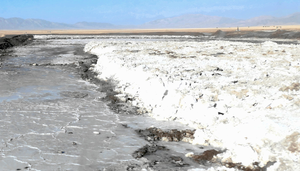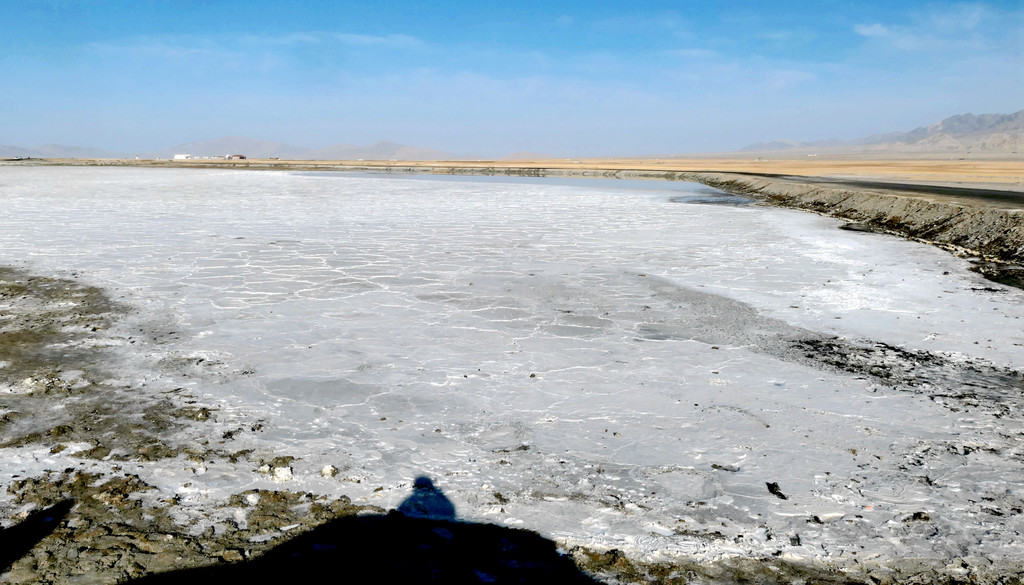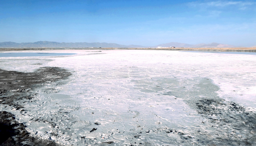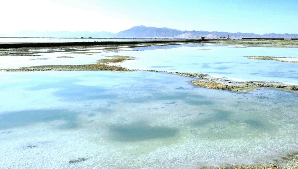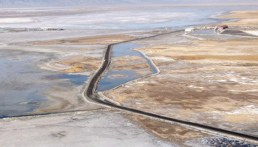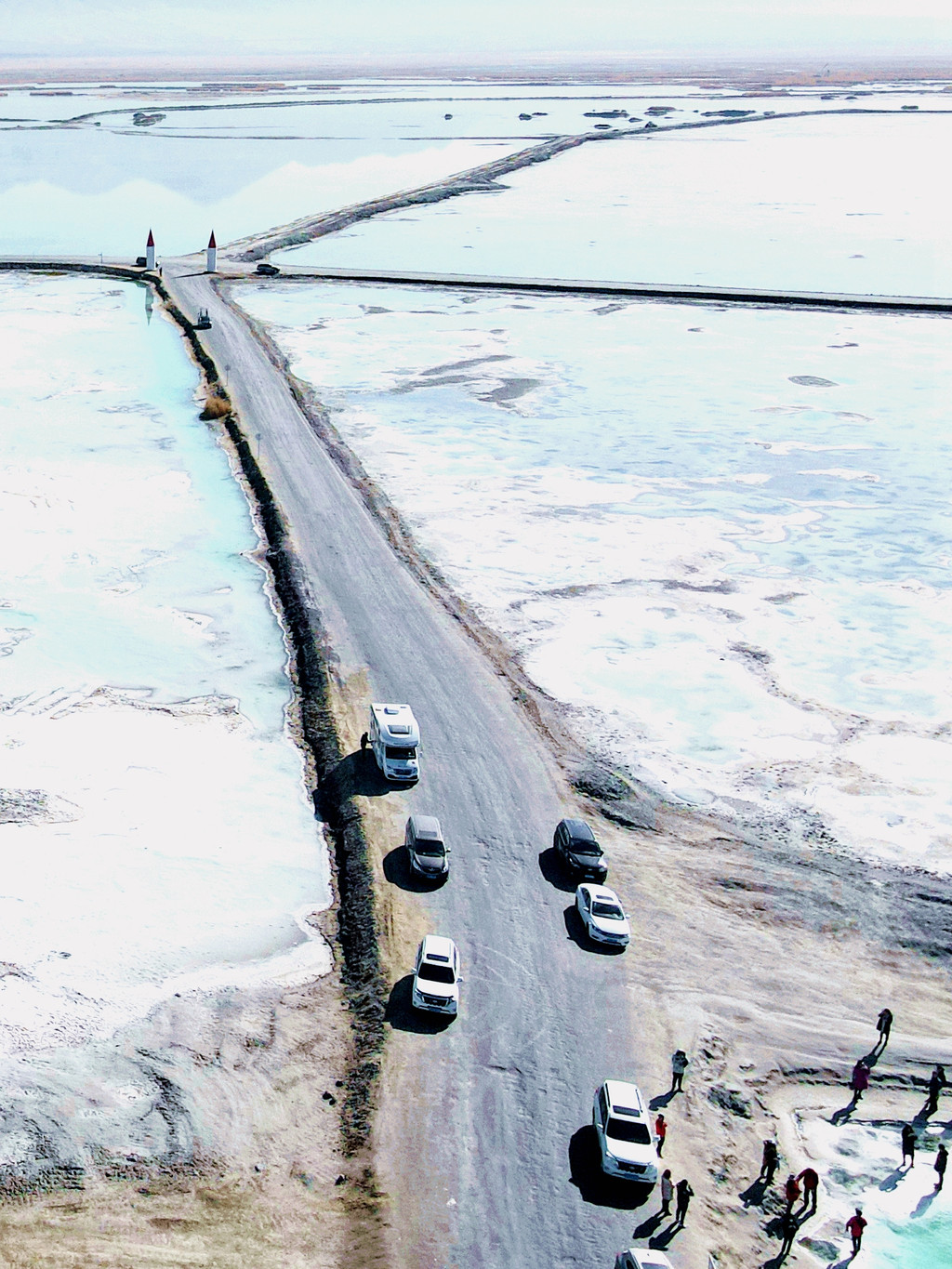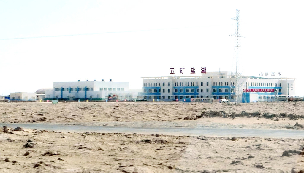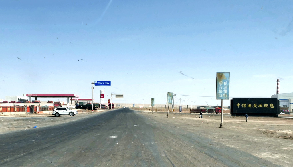 驶出这段水上公路再往前开不久便是“西台”小镇,镇上有国道G315的道班“西台工区”、一座加油站,还有一座属于中信国安集团的盐湖资源综合加工企业。
