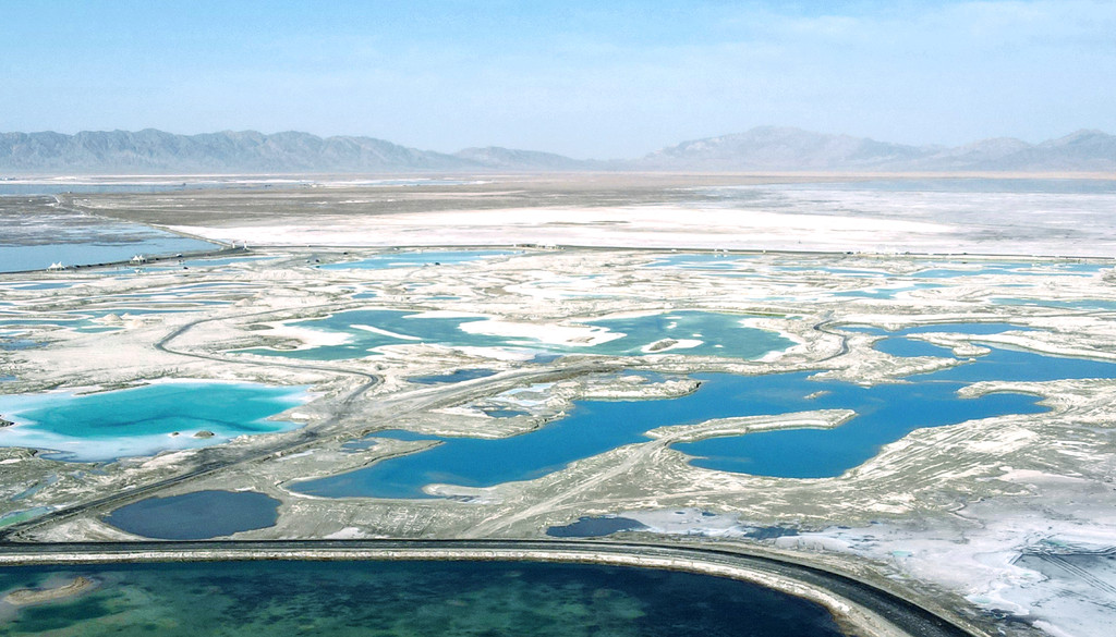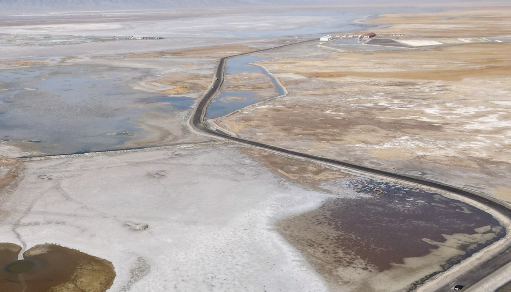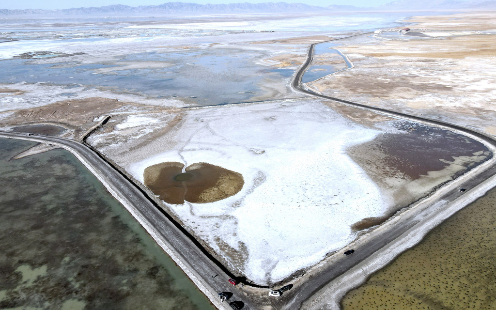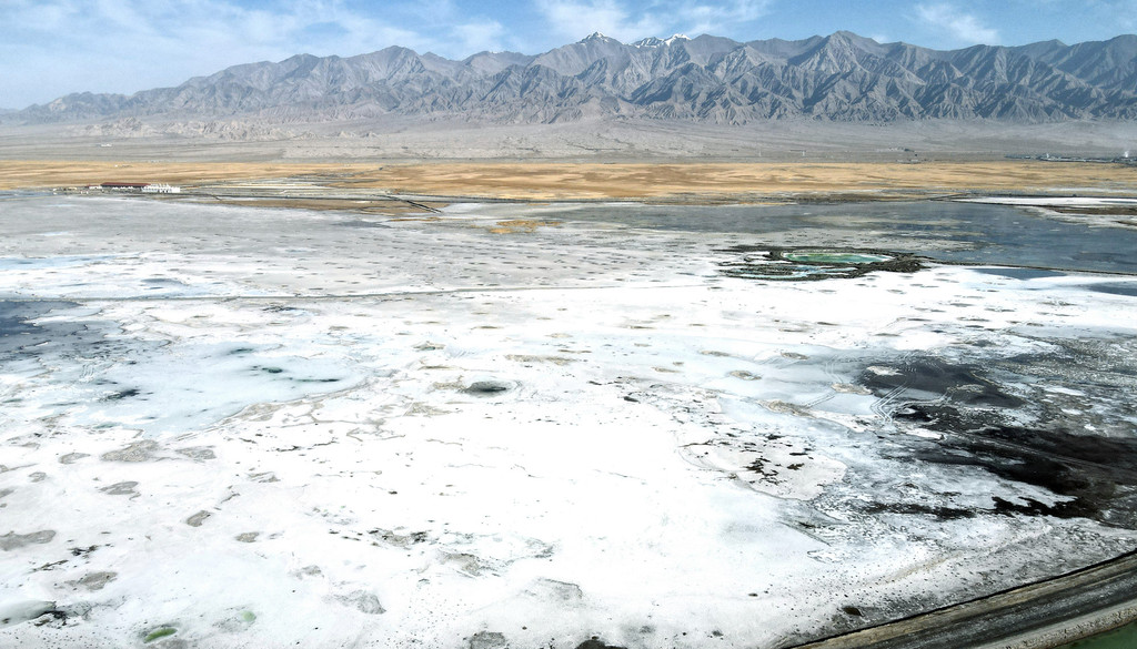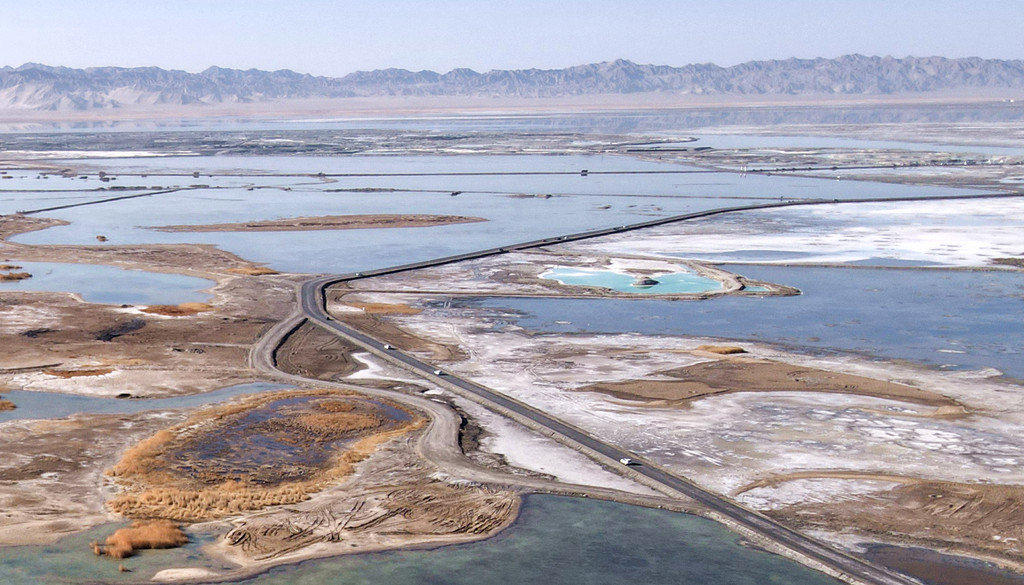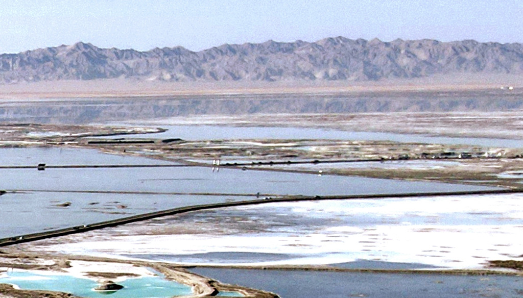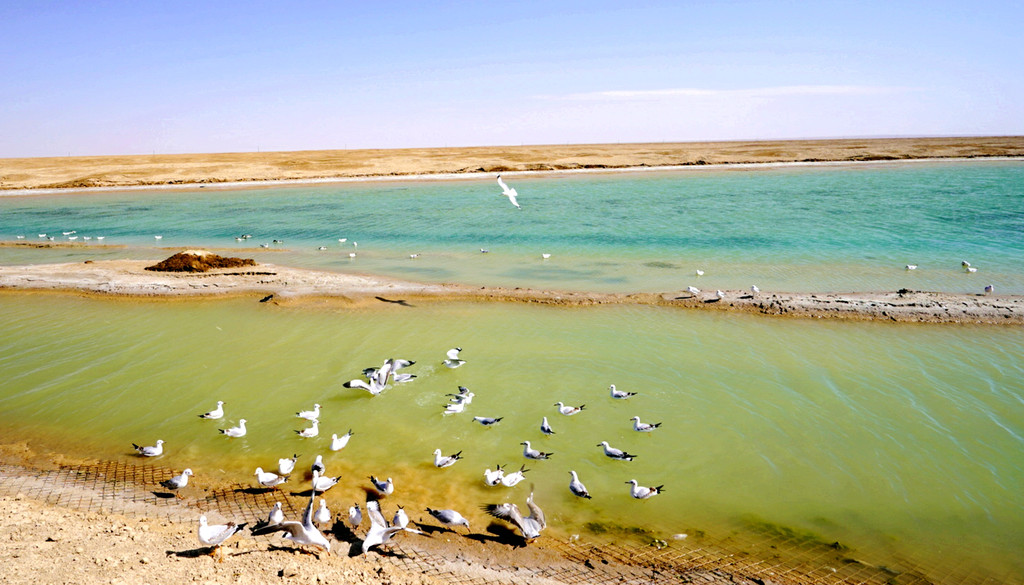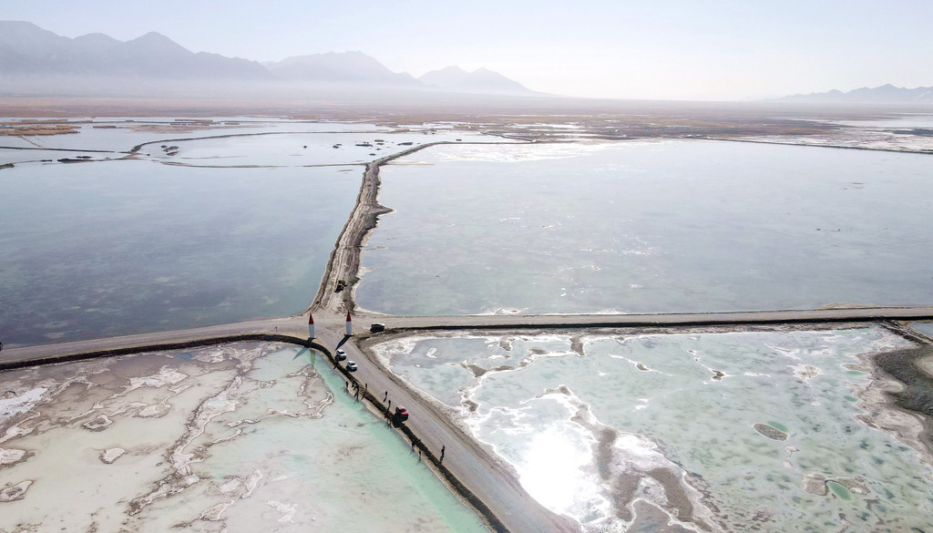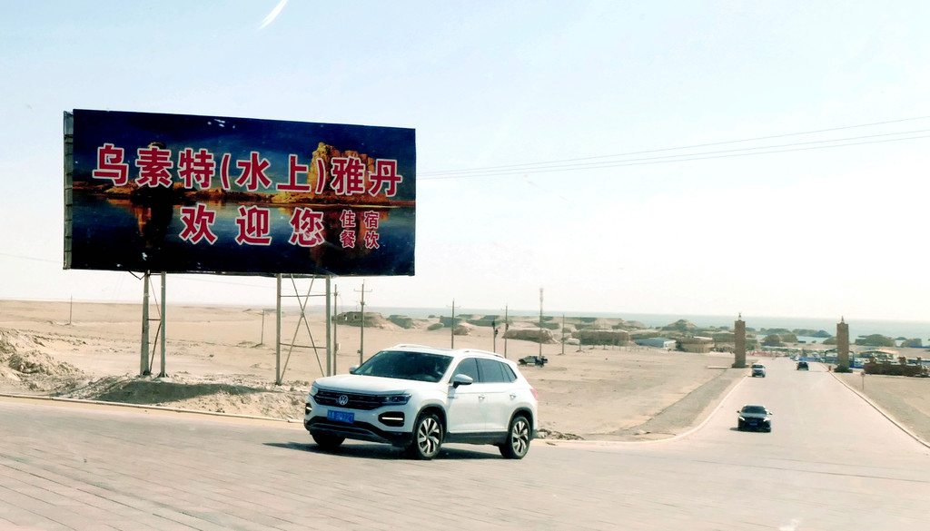 驶出这段水上公路再往前开不久便是“西台”小镇,镇上有国道G315的道班“西台工区”、一座加油站,还有一座属于中信国安集团的盐湖资源综合加工企业。