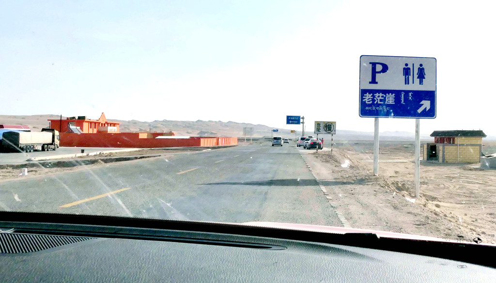 11:34驶经黄瓜梁停车区,仅有的建筑就是一座公厕。“黄瓜梁”也是三岔路口,左手岔路是省道S306,通向“冷湖”,我们10月11日就是沿着这条道路从敦煌方向过来,今日则是走右侧,继续沿国道G315直行,驶往大柴旦(德令哈方向)。