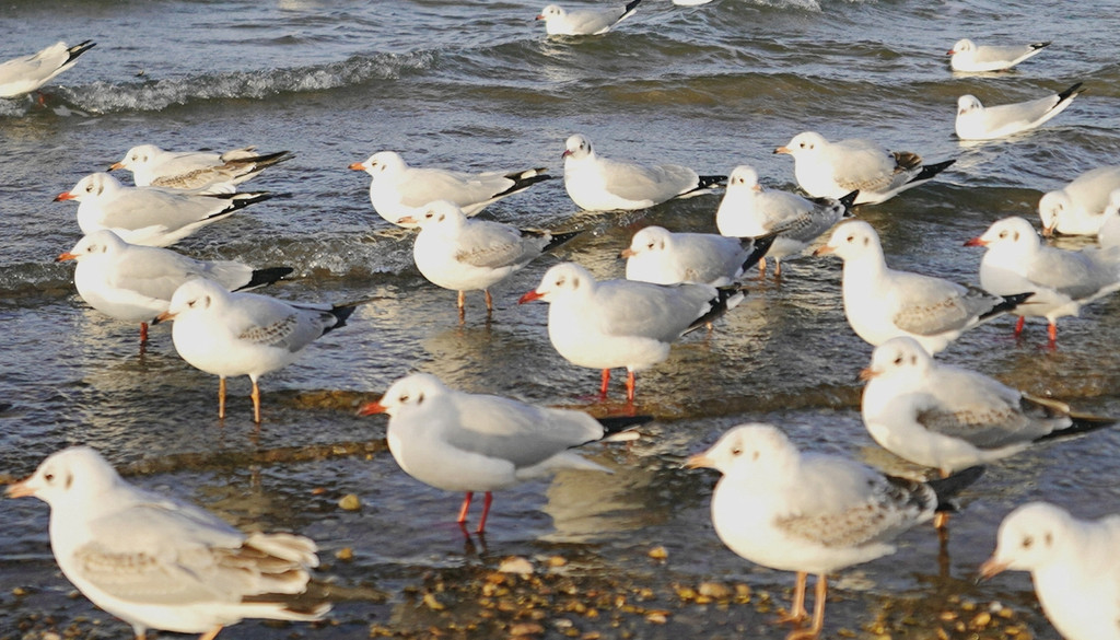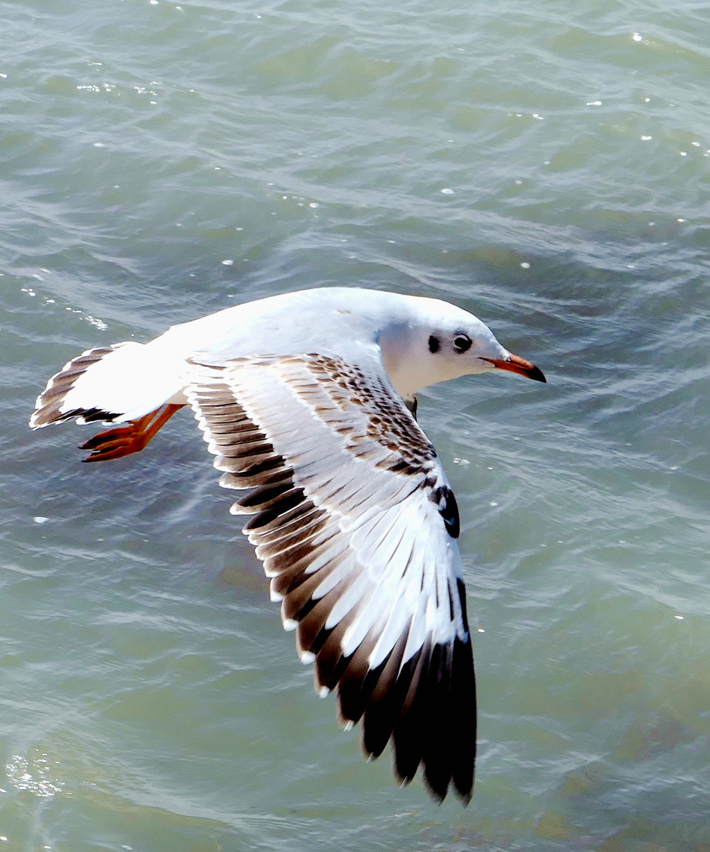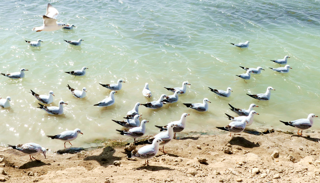 不过,跟昆明的红嘴鸥相比,我觉得这里的红嘴鸥品种更加纯正,昆明的海鸥有白脸,也有黑脸,显然是有品种参杂,这里的红嘴鸥全为白脸,没有一只黑脸,“脸谱”整齐划一,全都是标准的红嘴鸥嘴脸。