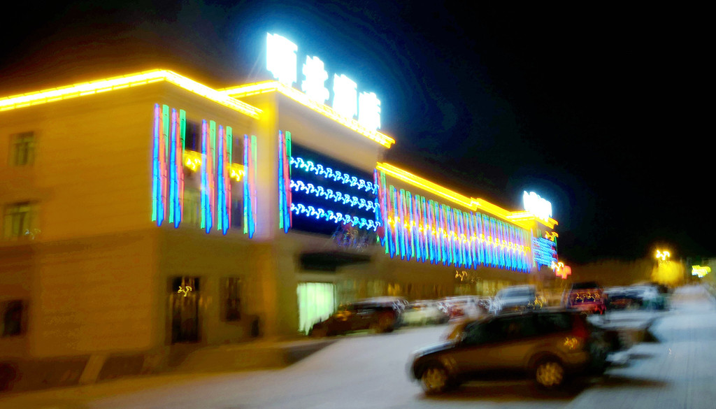 稍事安顿外出吃晚饭,步行向南大约400米,走到人民东路,选择一家湖南人开的饭馆,此处号称是本地人吃饭的地方,点了红烧肉等菜肴,X.J.说这是他此次来西北所吃过最满意的一餐。这家饭馆生意极好,入座必须见缝插针。晚八点过后返回酒店,此刻的户外气温已是零下,我最关心就是客房供暖,询问总台获知这里是采用地热,此刻已经开始供暖,果然,回到房间后感觉室内很是暖和。