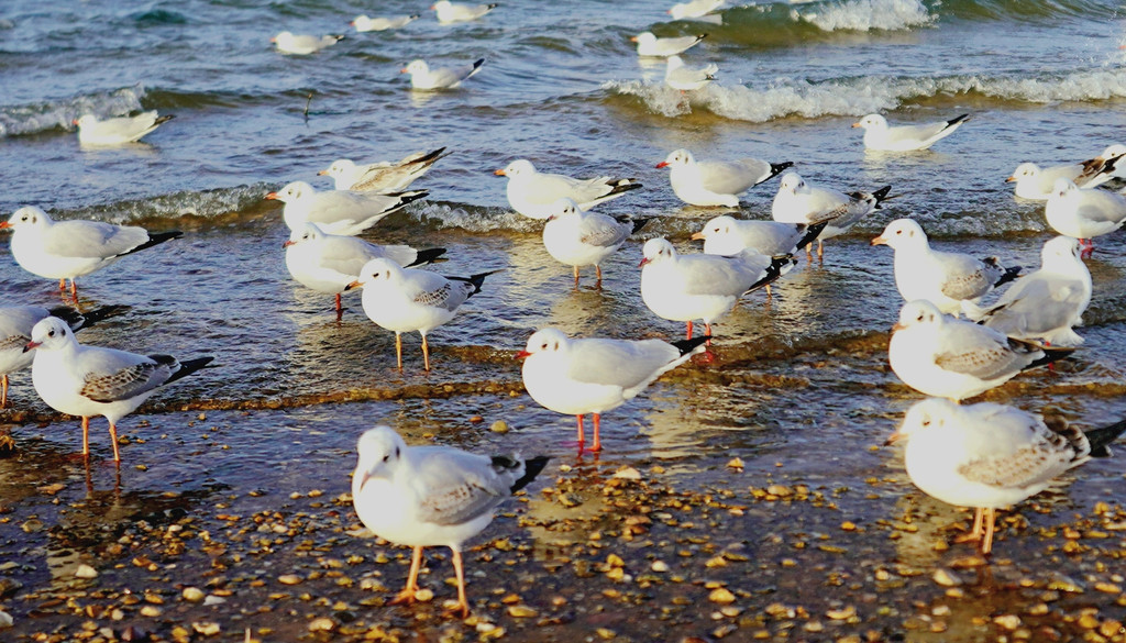 偌大湖面只是在这一个小小角落聚集着大群的海鸥,我曾于2015、2019两次在昆明滇池被红嘴鸥阵容之庞大所震撼,然而,就鸟群的规模而言,此刻所见一点儿也不输昆明,差别只在于昆明鸟多人也多,这里则是鸟儿铺天盖地,游人却是并没几个。