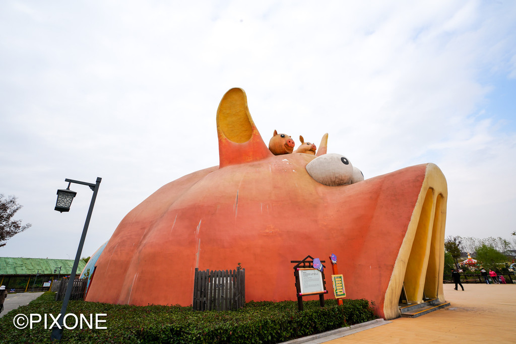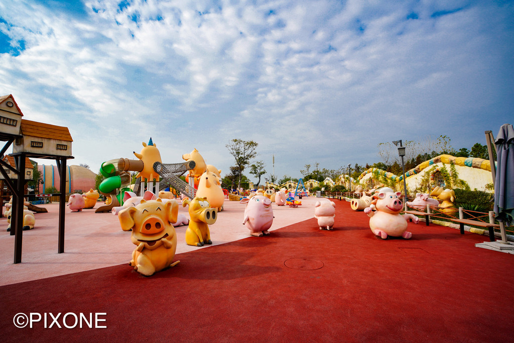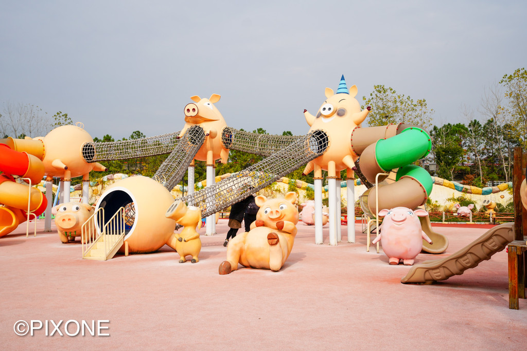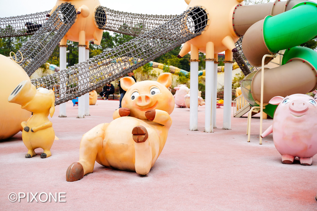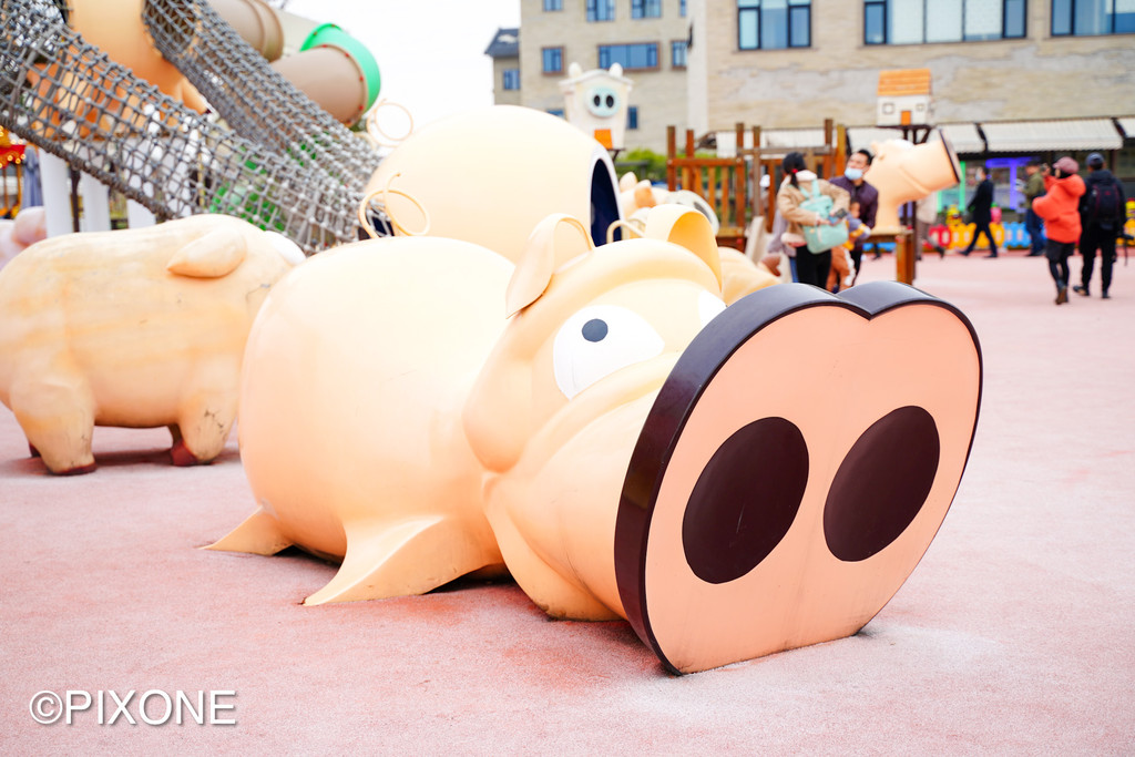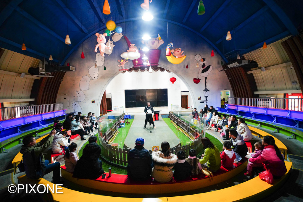 这里有全球最大的小猪造型剧场,里面有一群会表演节目的小猪明星,它们会撒娇、会亲嘴、会转圈圈,还能传球进门!