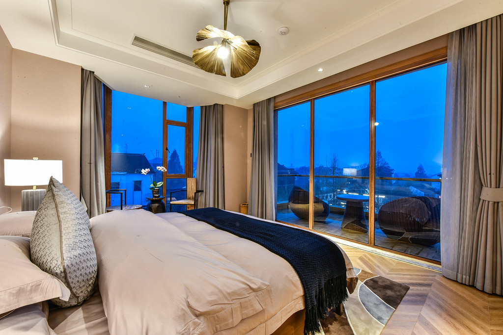 与星级酒店相差不大的民宿,在海盐甚至是在整个嘉兴地区恐怕也是为数不多了吧?山野君我这次来海盐县杏会民宿入住的房型是豪华观景房,整个房间看起来非常古朴典雅并带有民宿的韵味,我很喜欢这样的房间。