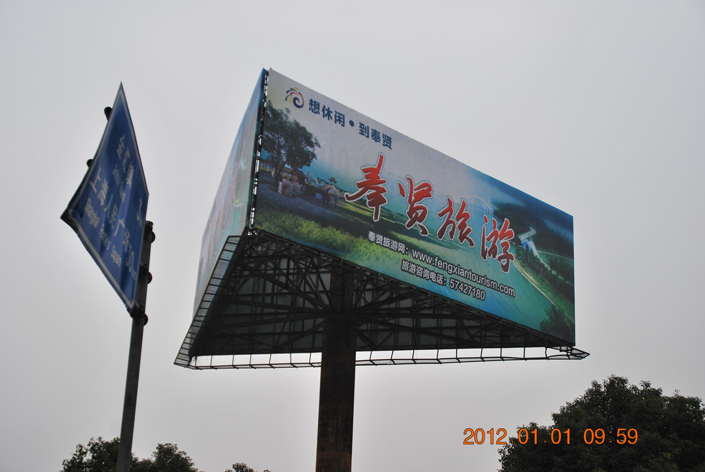 9点20分,抵浦星公路奉贤界,累计行驶35公里。下图是浦星公路上的一个广告牌,奉贤是上海一个区,位于浦东至金山之间,都市乡村是奉贤旅游的卖点。