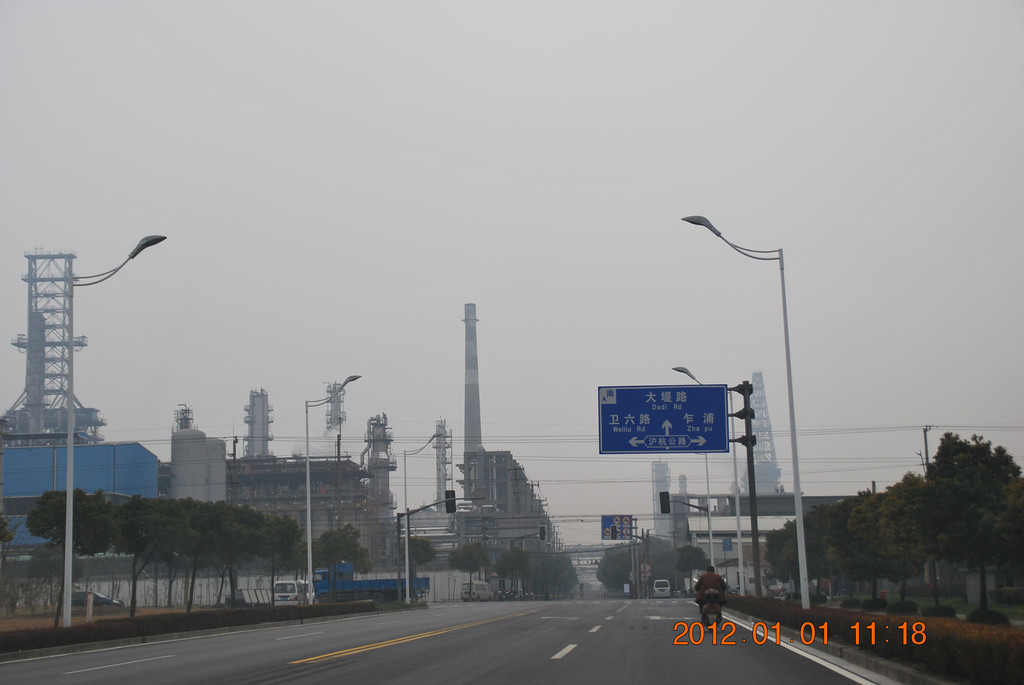 这张摄于金山区卫八路上,金山卫是一个石化城,上海石化的所在地,放眼望去都是石化设施。