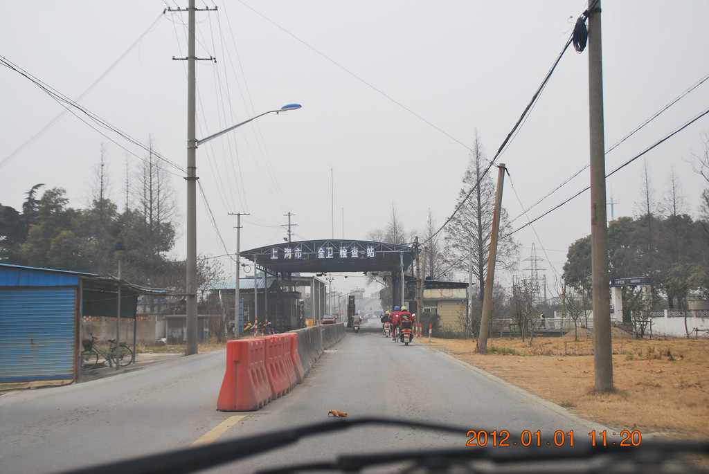 9点10分,从上海家中出发,走内环线高架、罗山路、中环线高架、济阳路、浦星公路、平庄路、浦卫公路、金山大道,从金山卫进入浙江平湖境内。