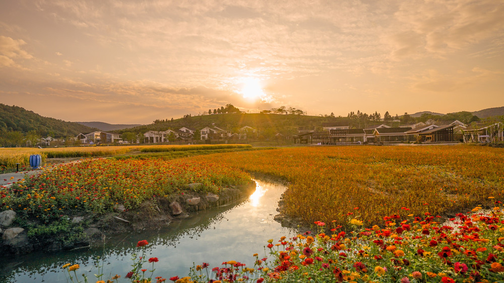 这里有金色稻浪翻滚,有各色花草镶嵌其间作为点缀,好一派田园风光,那是城市中无法体会的另一种浪漫,那是即将丰收的喜悦。