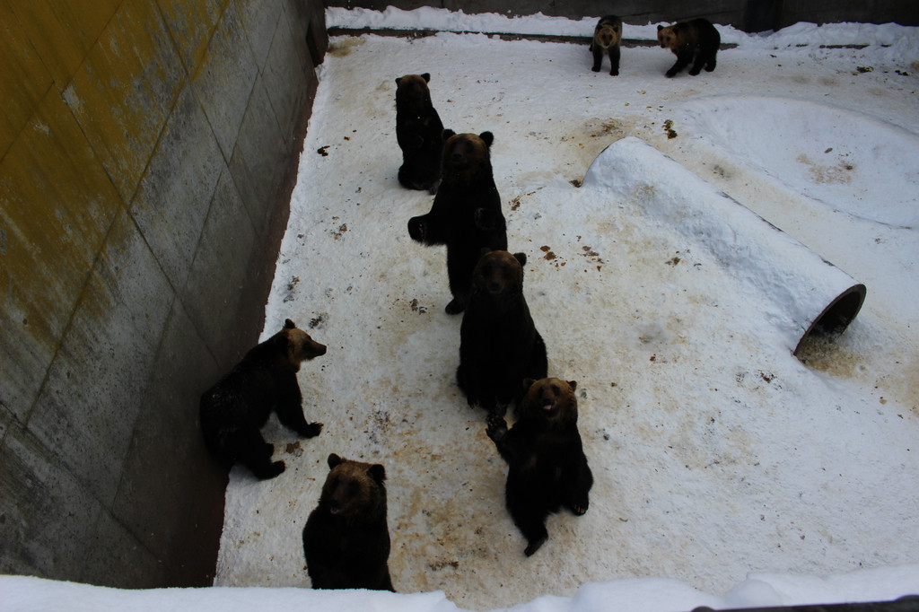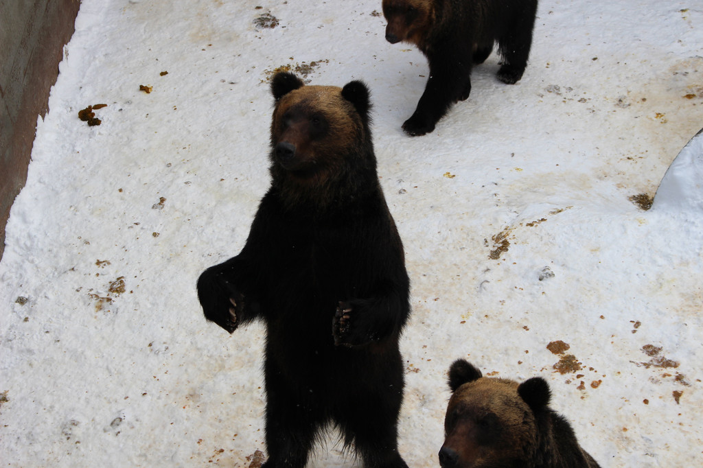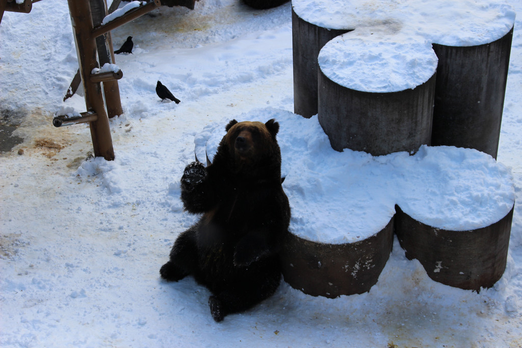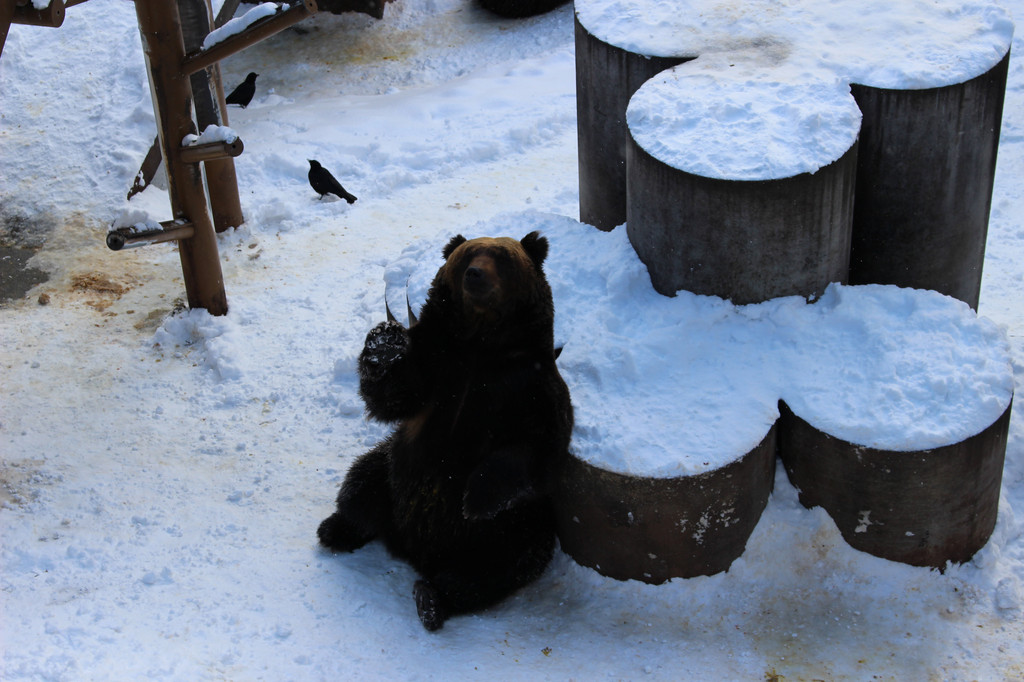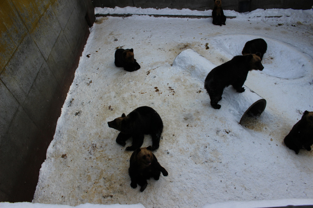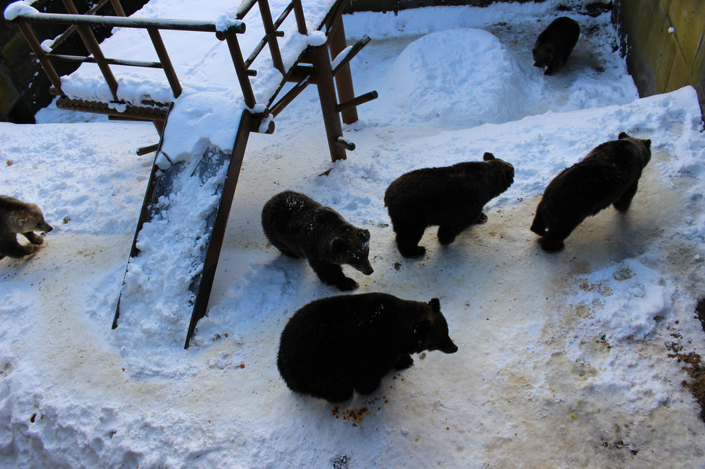 这些熊远比我拍的可爱,对了,回来看到拍出来的相片以后不是很满意,由于地上有雪,所以拍出来的熊都是比较黑,请问有谁知道像这样的环境如何拍出比较清晰的熊,因为那个地方不让用闪光灯,地上的雪又影响相机自己的感光度,所以拍出来的熊都是比较黑。