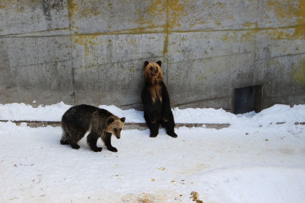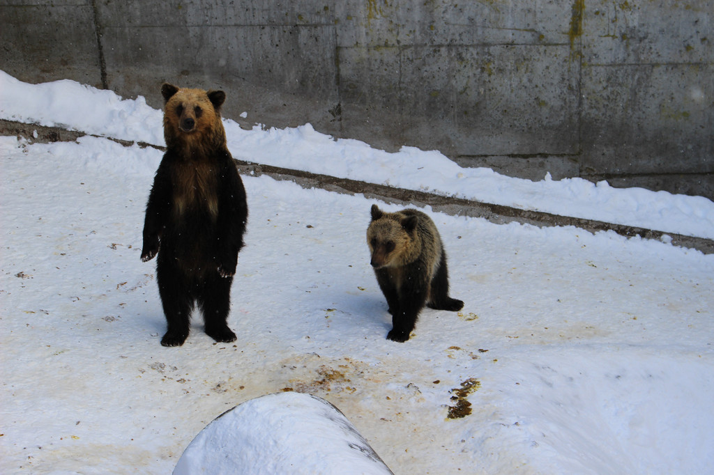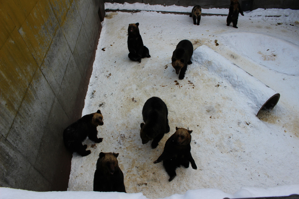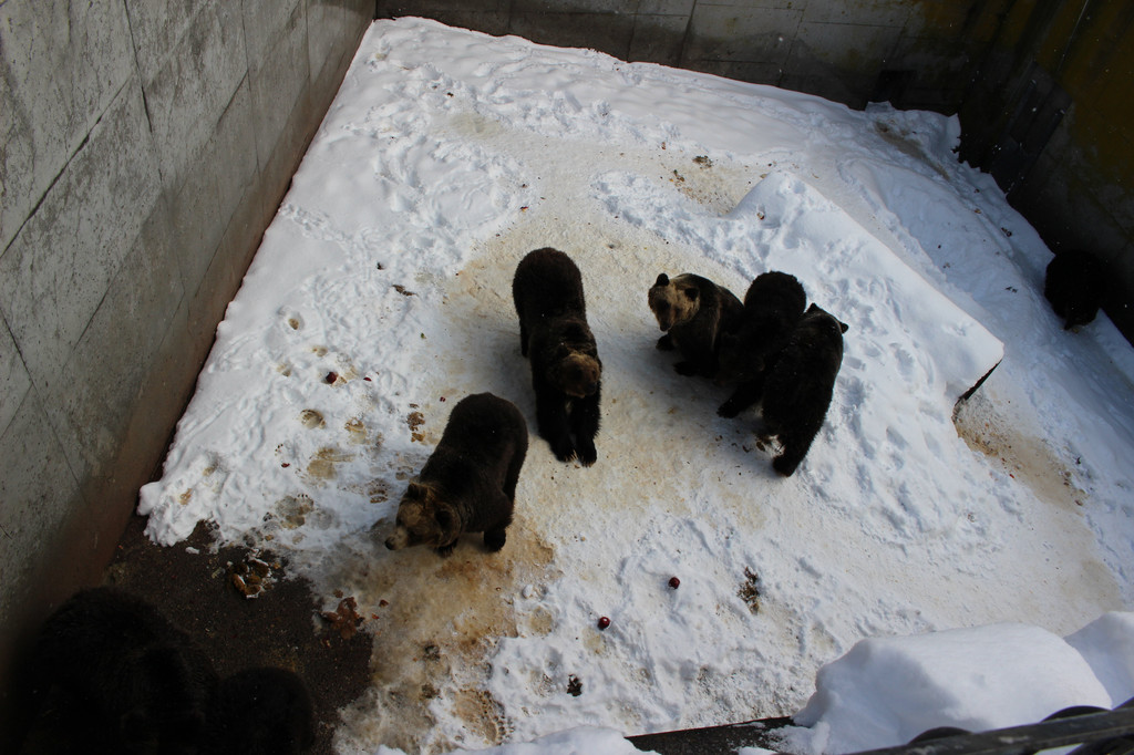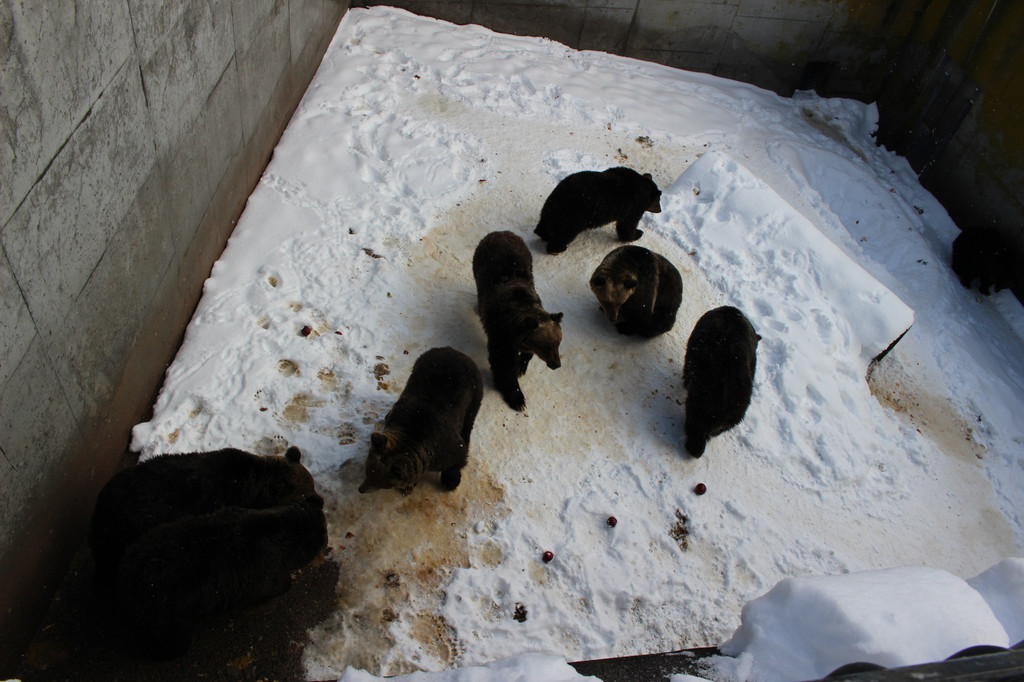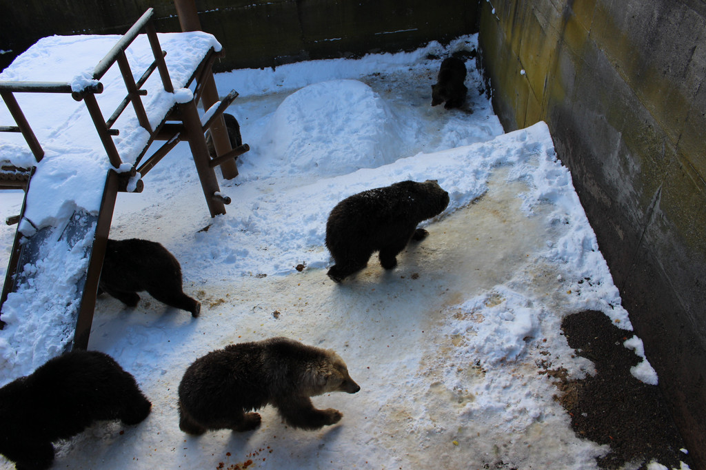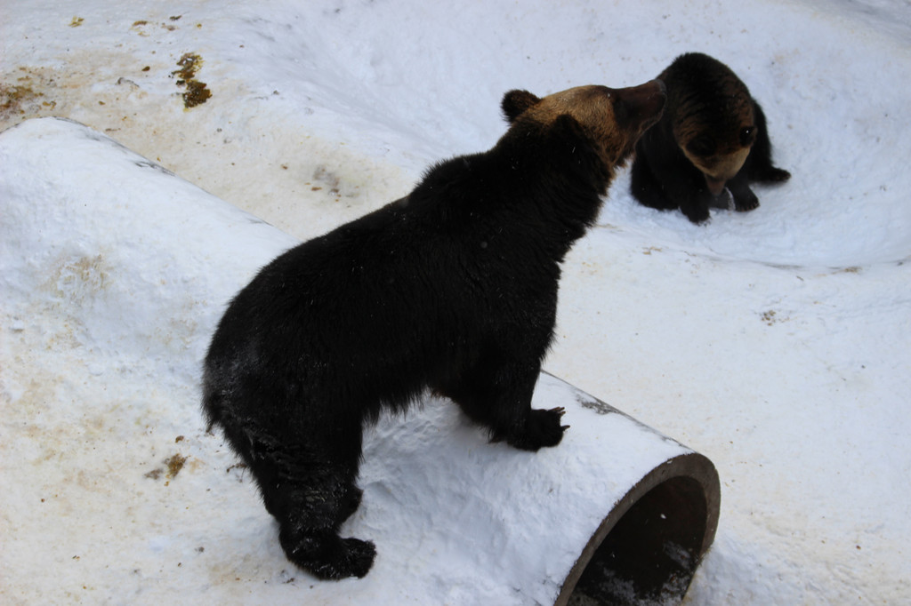 这些熊远比我拍的可爱,对了,回来看到拍出来的相片以后不是很满意,由于地上有雪,所以拍出来的熊都是比较黑,请问有谁知道像这样的环境如何拍出比较清晰的熊,因为那个地方不让用闪光灯,地上的雪又影响相机自己的感光度,所以拍出来的熊都是比较黑。