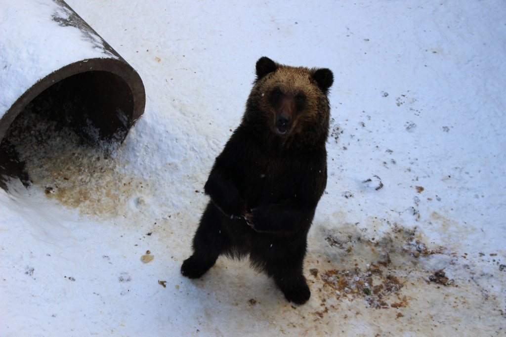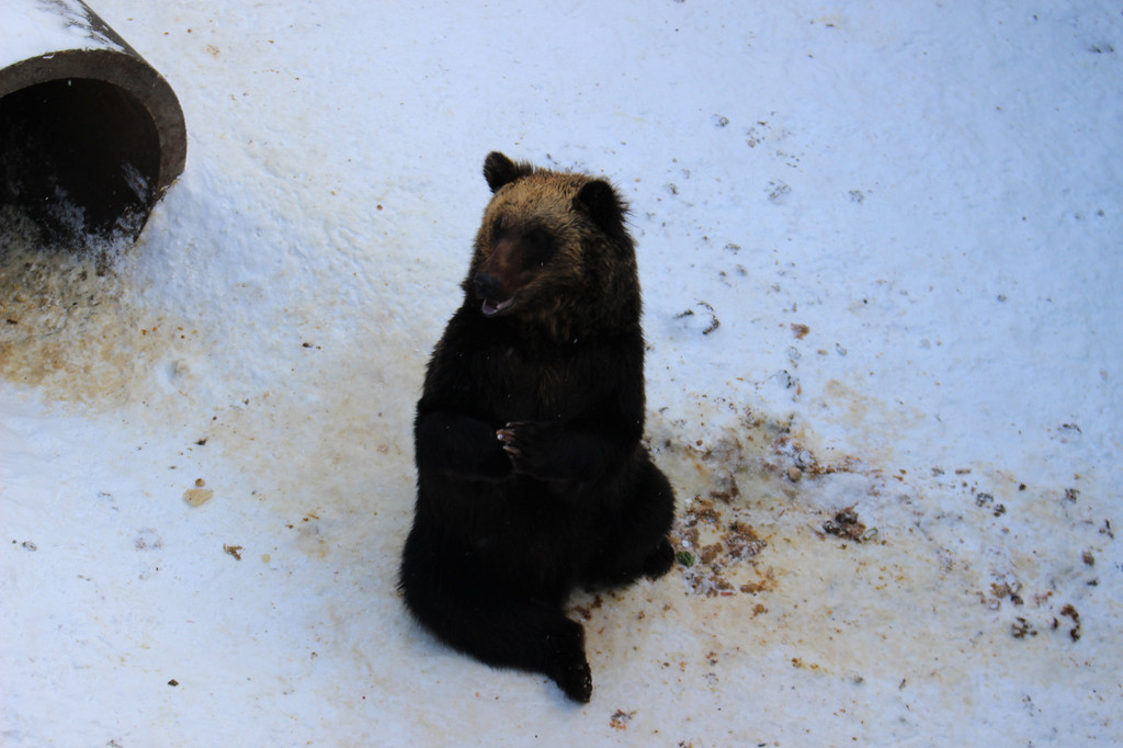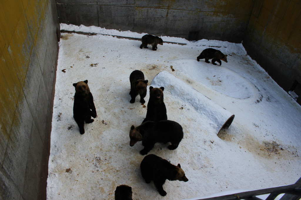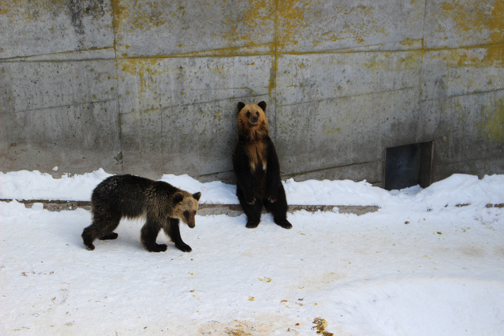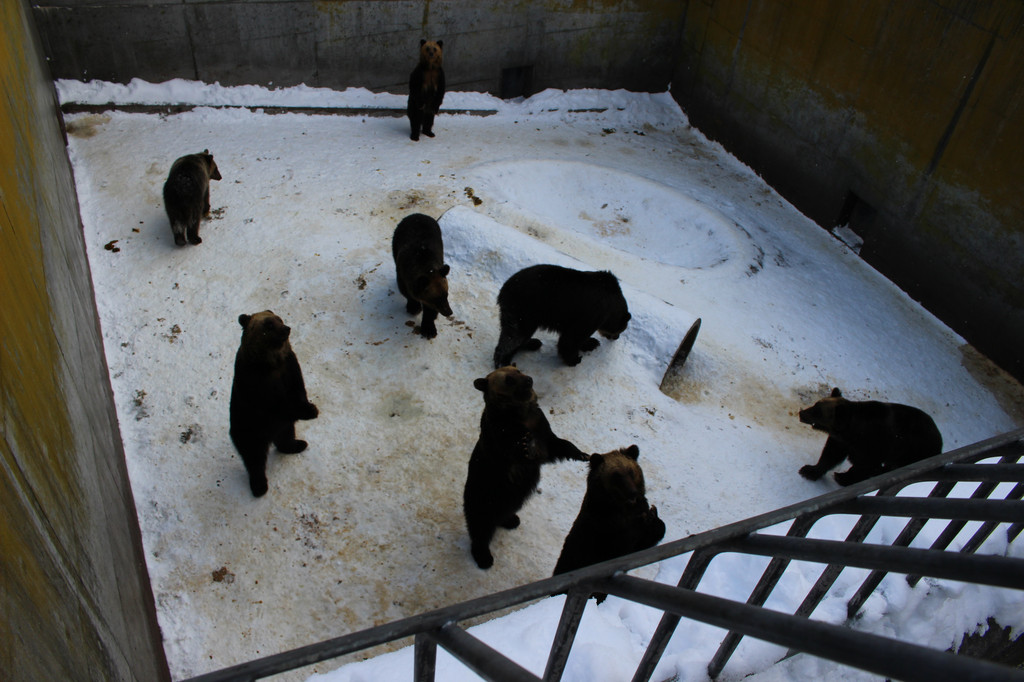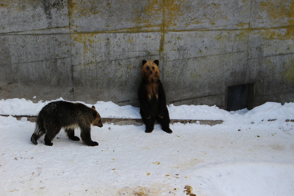 这些熊远比我拍的可爱,对了,回来看到拍出来的相片以后不是很满意,由于地上有雪,所以拍出来的熊都是比较黑,请问有谁知道像这样的环境如何拍出比较清晰的熊,因为那个地方不让用闪光灯,地上的雪又影响相机自己的感光度,所以拍出来的熊都是比较黑。