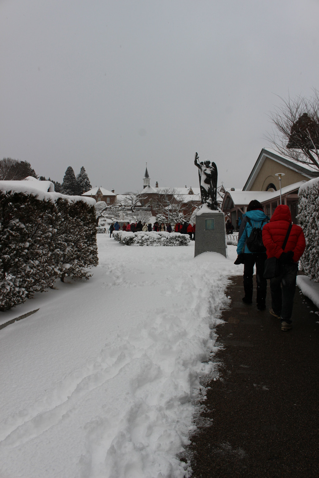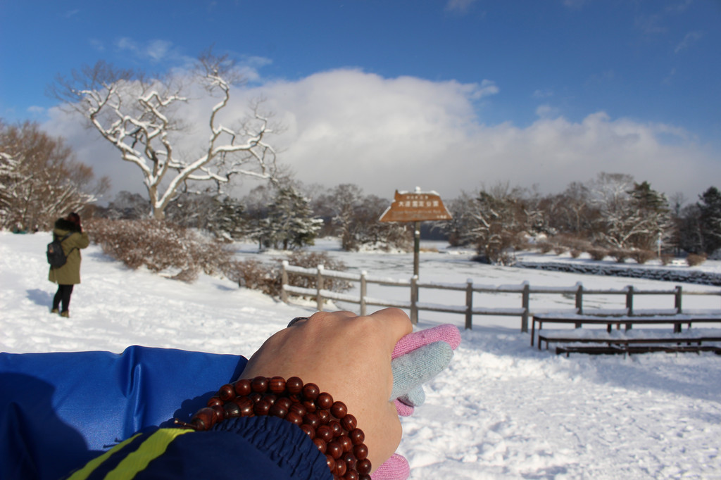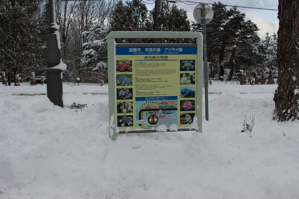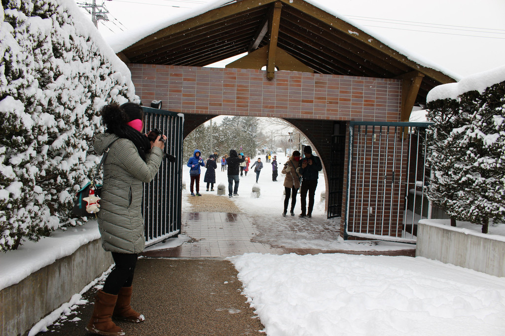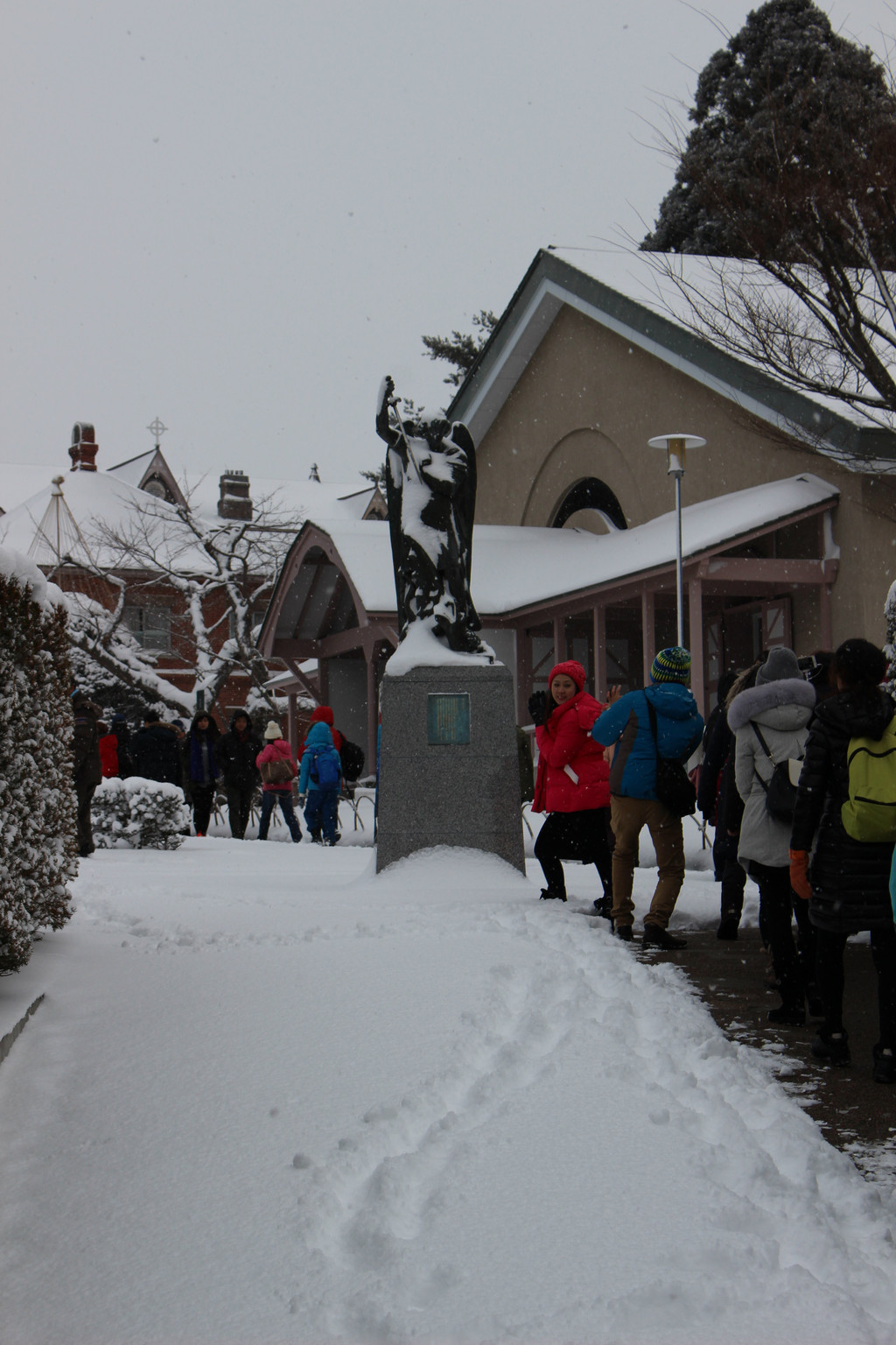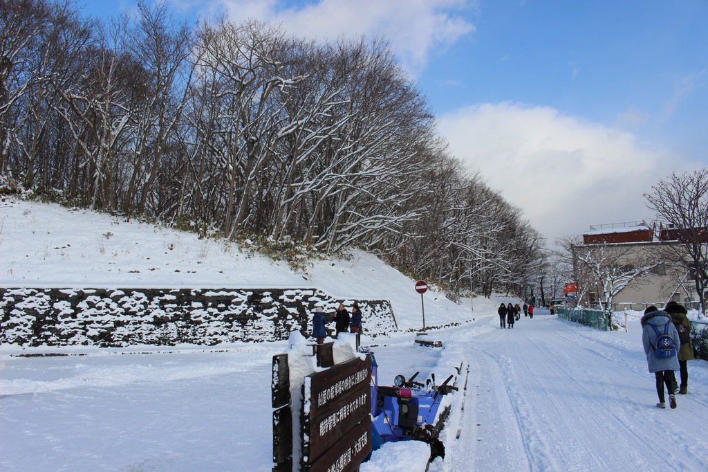 虽然下雪非常的美,但是心中也有暗暗担心,因为一会要去函馆山,下雪不知道会不会影响到夜景,对了,这里还要多说一句,春天的时候赏樱花,最好来这里,这里有1200多株樱花树,而且有很多的品种只有这里有。这是导游说的,明年如果兴起就来这里验证一下。