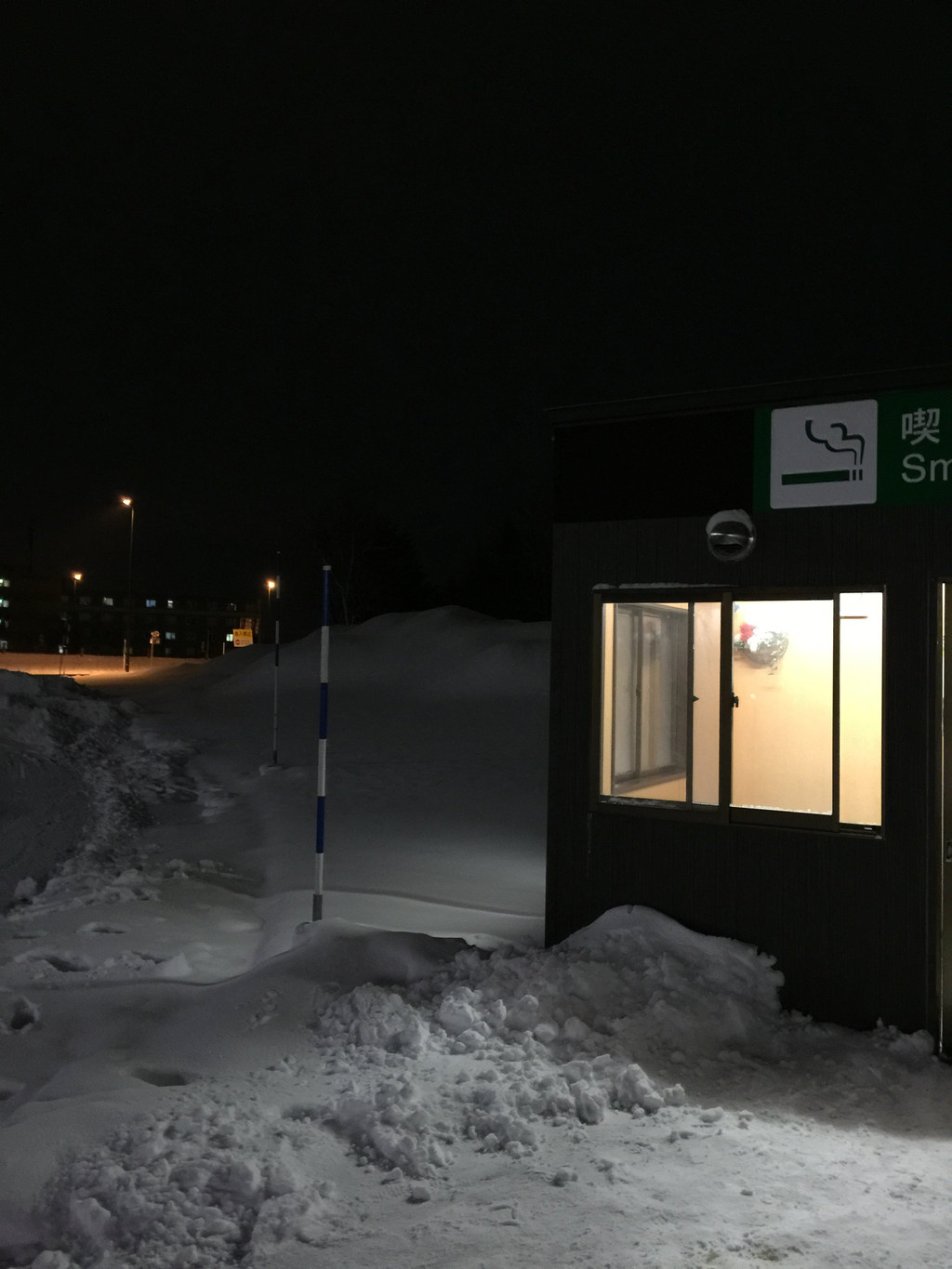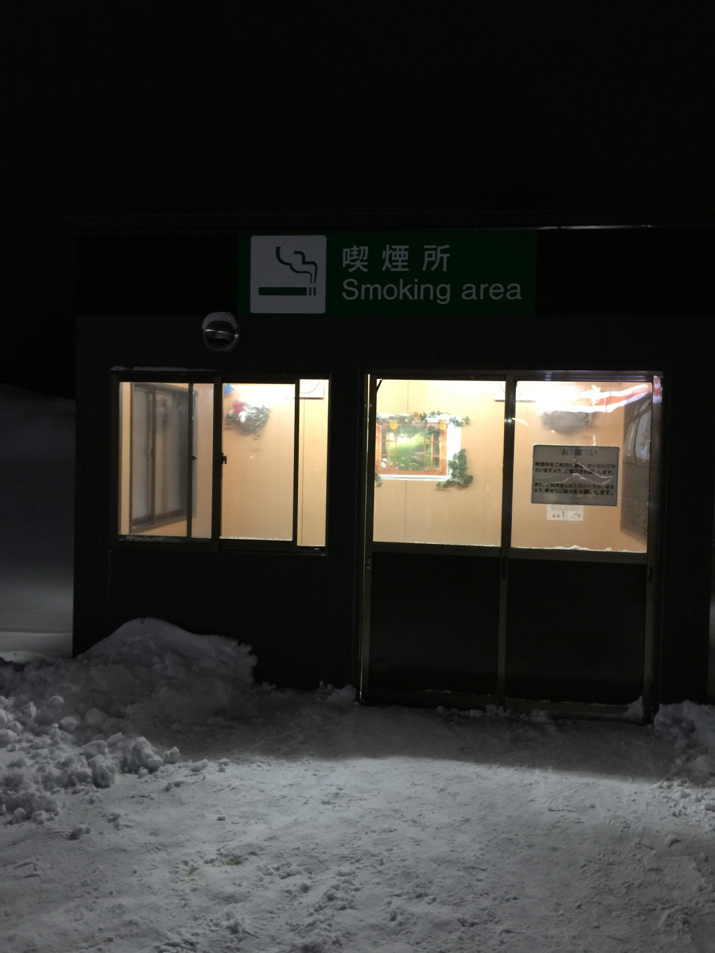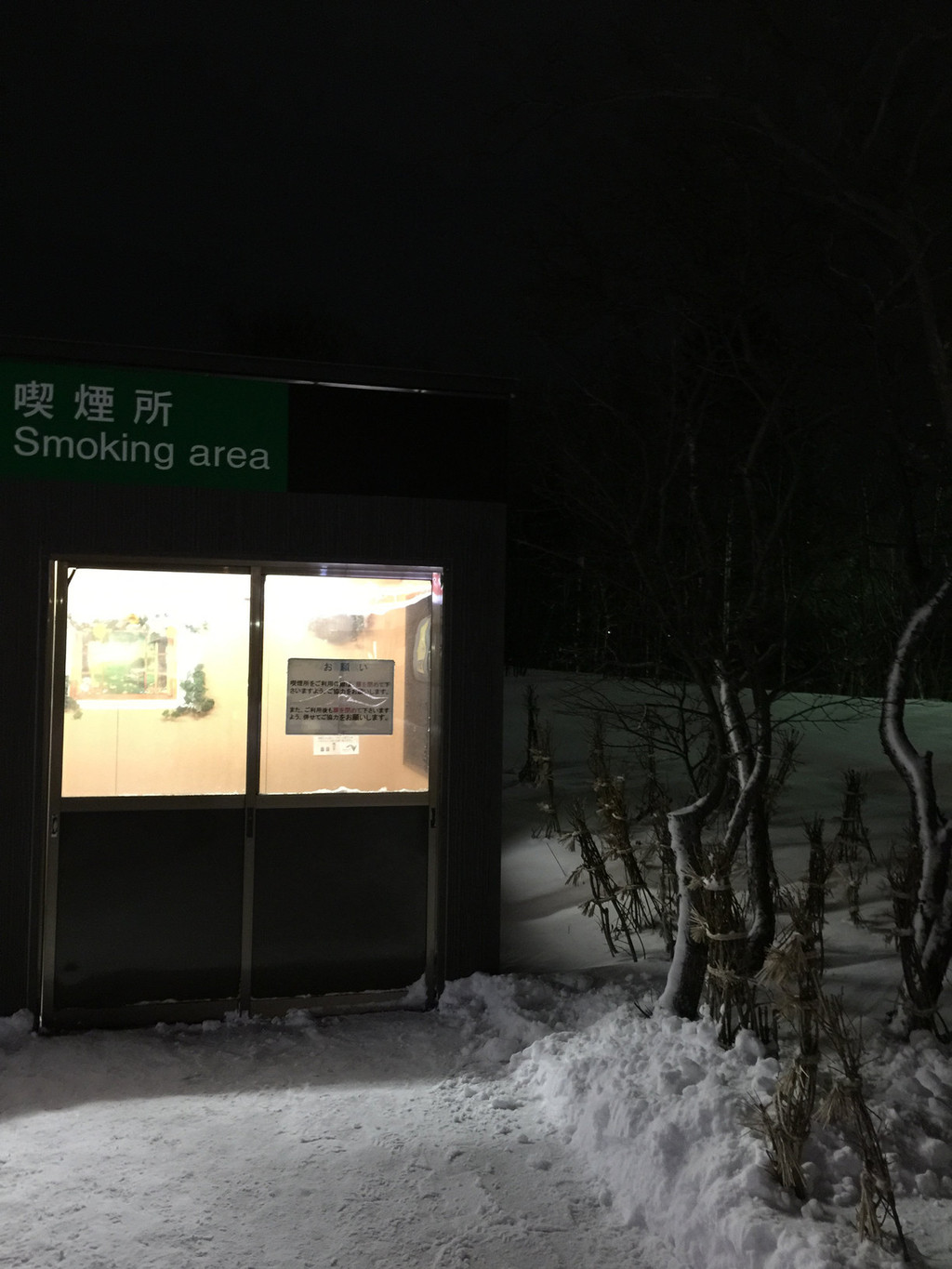 坐车到札幌酒店要两个半小时,中途休息了一下,这个才是真正禁烟的国家,荒山野岭也不能随便抽烟,这个就是荒山野岭中的吸烟室。