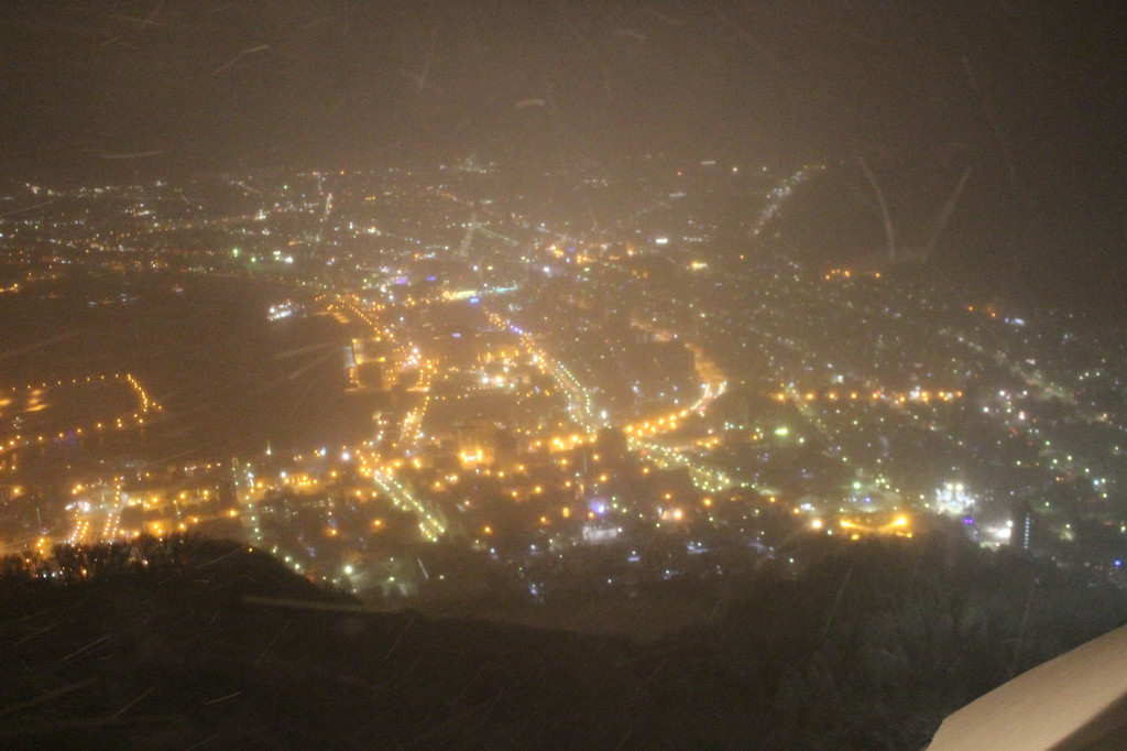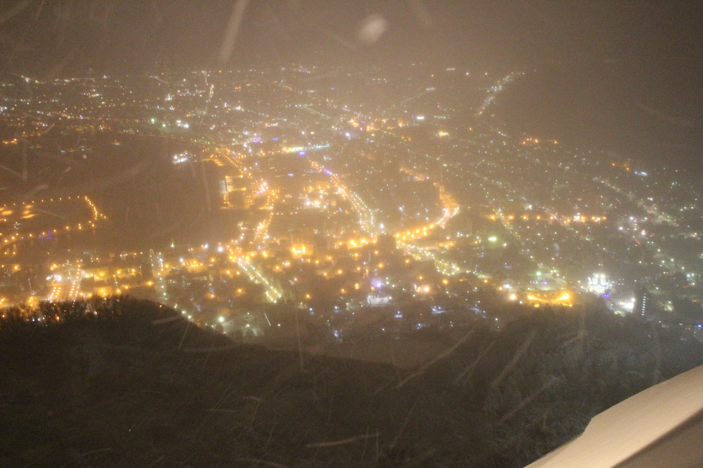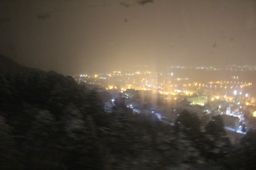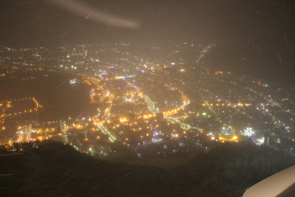 总体来讲,人品真的不错,到了上面,大风居然把云彩吹开了一道缝隙,勉强看到了夜景。