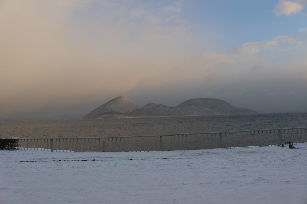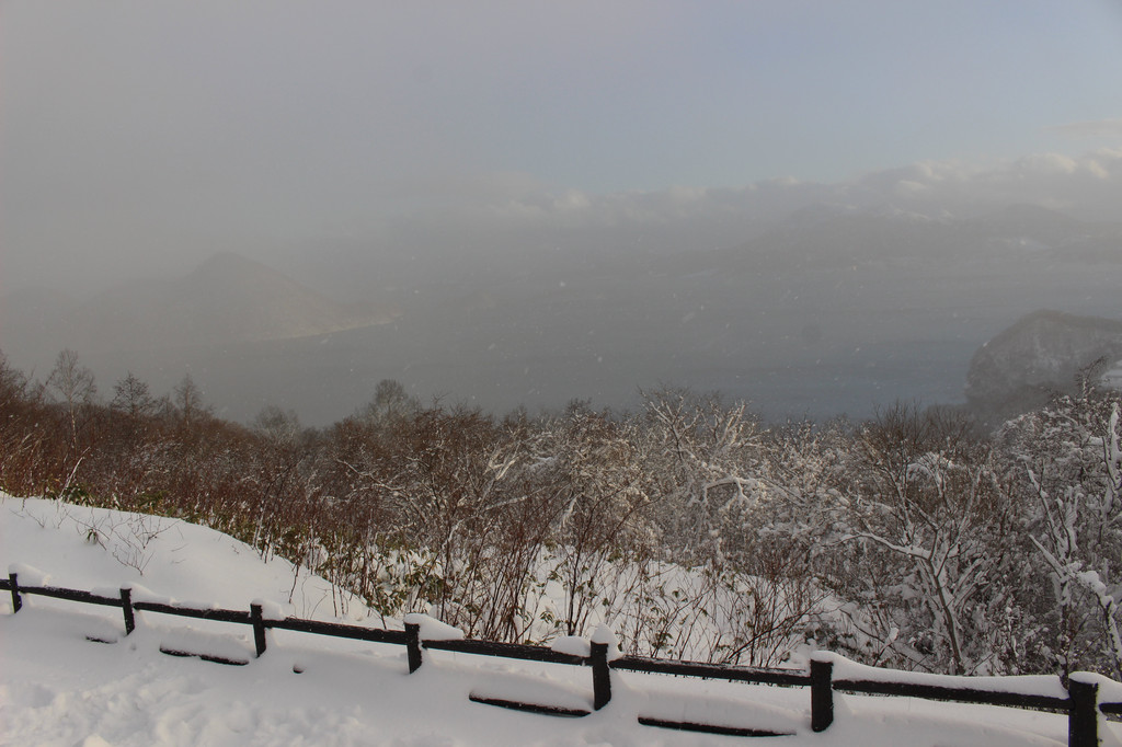 走了,再次出发,下一站洞爷湖,也是比较拼人品的地方,这个照片就是按照到了洞爷湖展望台以后的时间顺序排列了,刚到的时候几乎什么都看不到,全是云,后来人品爆发,出太阳了,云开了,就只开了5分钟左右。